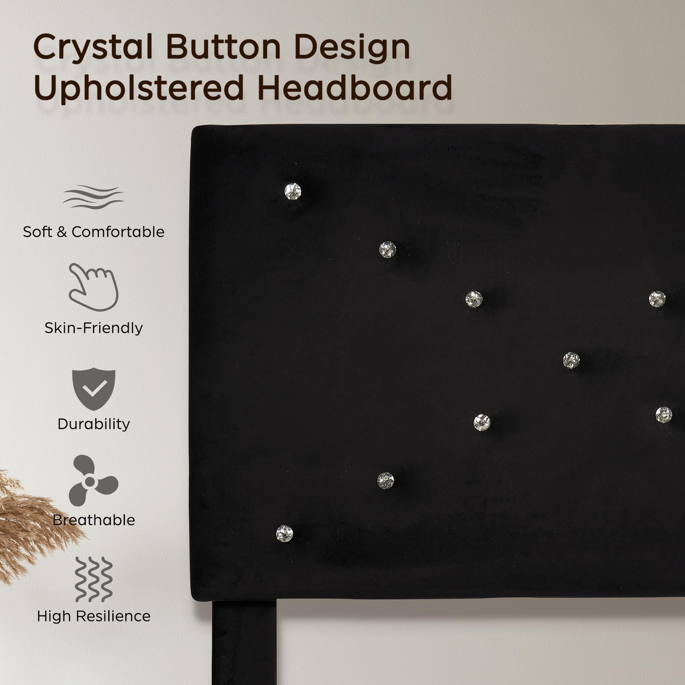 UHOMEPRO Black Platform Bed Frame, Twin Bed Frame with Velvet Upholstered Headboard, No Box Spring Needed, Easy Assembly