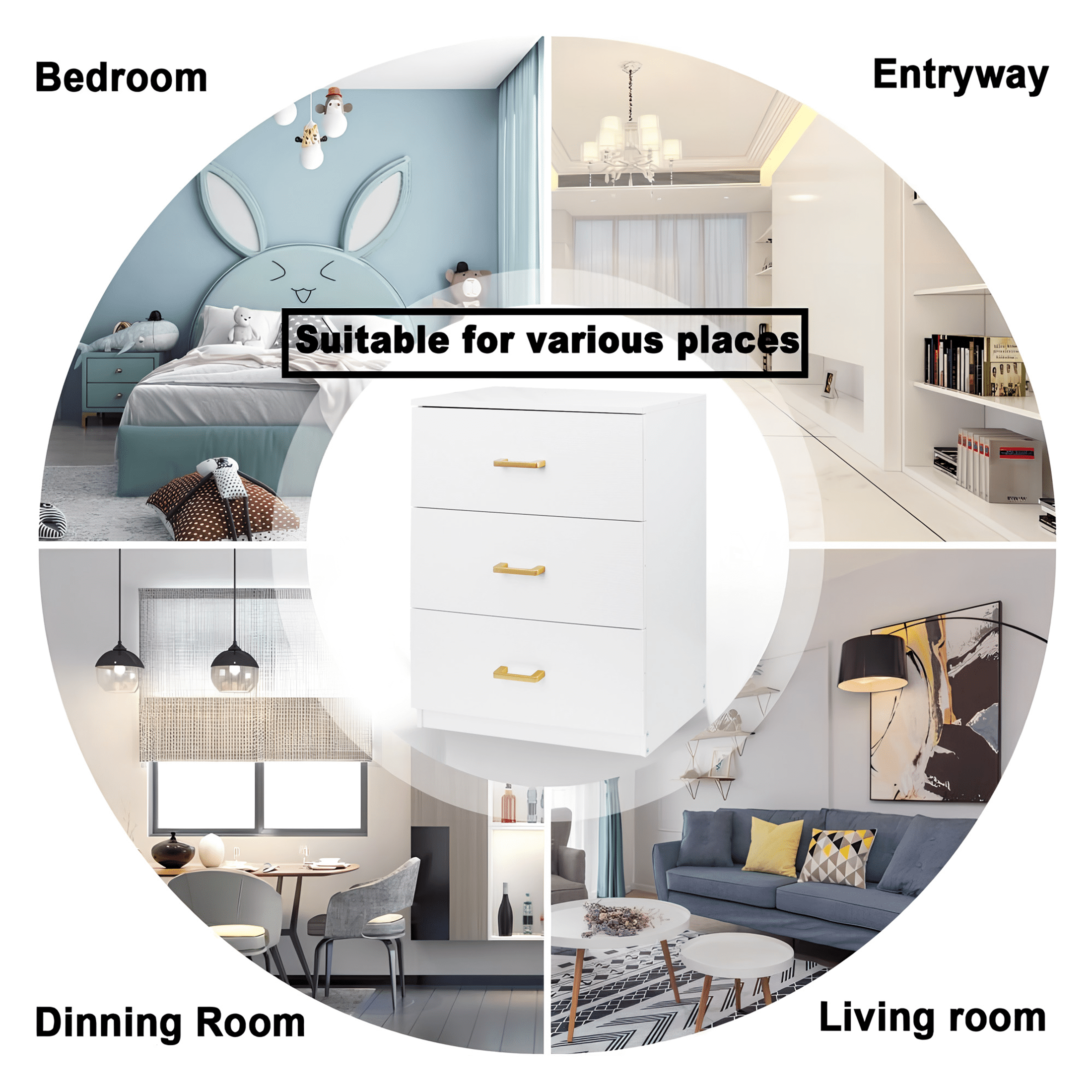 ELEGANT DESIGN – A great addition to any bathroom, kitchen, or living space; simple lines, smooth cupboard door, and a matte white finish are sure to improve any room’s look. LARGE COMPACITY STORAGE – The cabinet with 3 separate drawers allows you to storage 10-14 T-shirts or dozens of pairs of socks in one drawer. The roomy drawer could keep household items organized, including clothes, toys, cosmetics, daily groceries, and towels. PERFECT FOR SMALL SPACE – Designed to fit into smaller spaces, this cabinet can fit into bathrooms, laundry rooms, bedrooms, and pantries to help provide closed drawer and cabinet spaces for hidden storage. EXTENSIVE USE – Durable drawers give the storage organizer a modern style. This unit easily fits in various living spaces: living rooms, bedrooms, hallways, entryways, closets, and nurseries, etc. 100% SATISFACTION – We can assure you that you can contact us at any time no matter if you have any questions with the nightstand, and we will give feedback and solve your product problems within 24 hours.