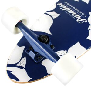 This is a classic Kicktail shape. Comprised of 7 ply’s of canadian maple, the deck features concave and measures 9″ x 40″ with a 23.5″ wheelbase. This is one of the easiest longboards to maintain stabilty and stay in control. The Bigfoot Stalkers offer a newly modified super high rebound formula and shape. This new shape was chosen based on rider feedback, the 81a hardness and 50mm wide footprint make the stalkers perfect for the rider looking for a nice sized wheel that will perform at speed and give awesome grip while carving. The board is complete with high-grade, strong aluminum alloy trucks, high rebound bigfoot wheels, Abec-7 Speed Bearings, Hardware, Risers, and Black Diamond Griptape.. Board Specifics:. Size: 9″ x 40″. Type: Kicktail. Graphic: THE MALLOWS. Construction: Canadian Maple. Trucks: 6.5 (9″). Bigfoot Wheels: 70mm 81A Stalkers. Grip: Black Diamond Die-Cut