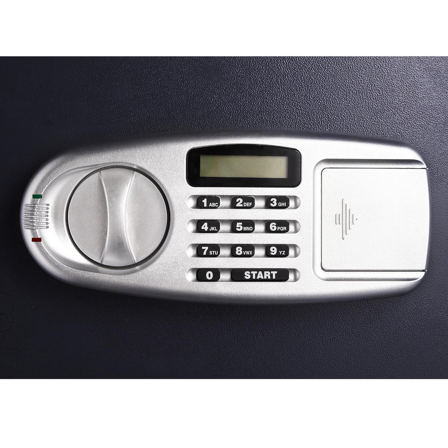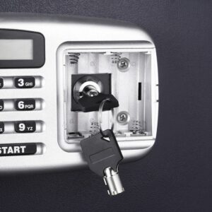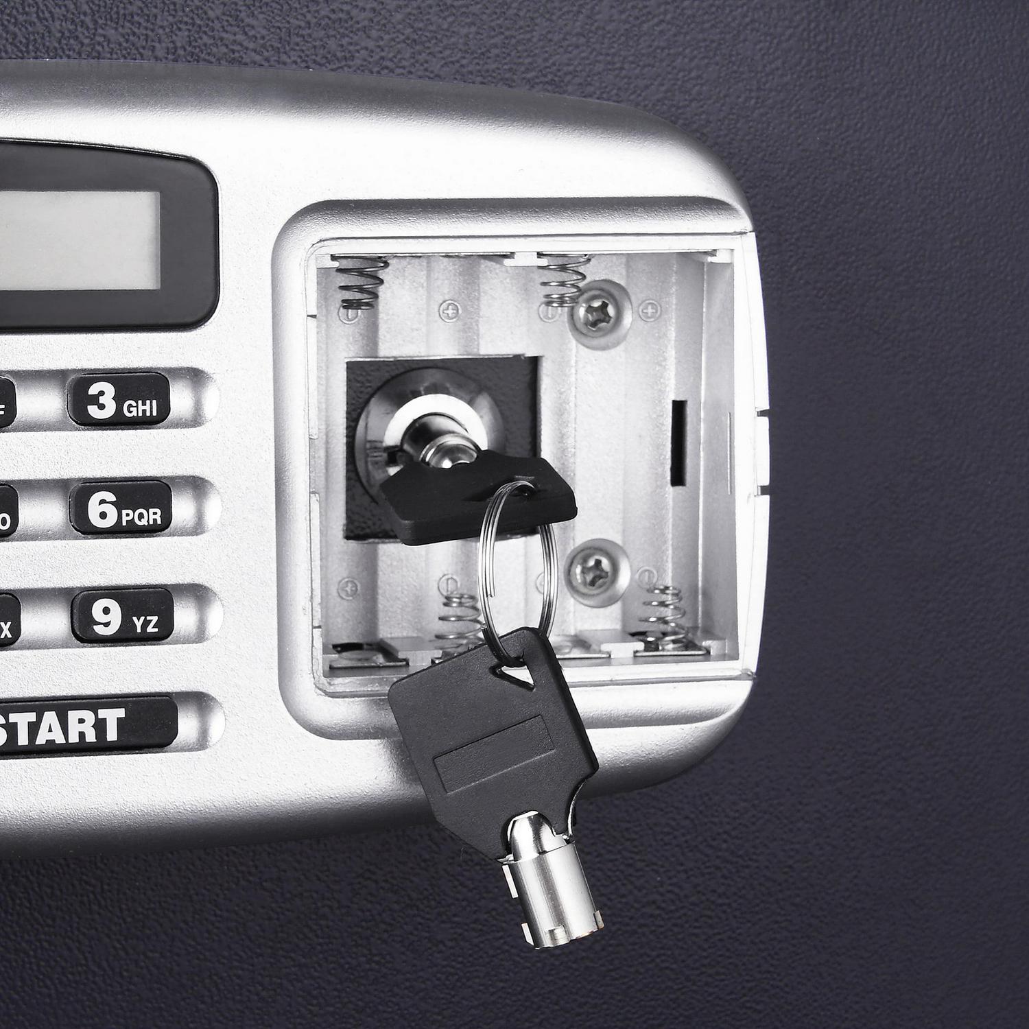 – DIGITAL Access safe box contents easily with a simple programmable Electronic Lock with a buzzer and LED. The electronic lock allows programming with your choice of a 3-8 digits long that can be changed infinitely. Includes a different set of 2 keys.