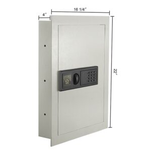 Protect your treasured belongings and documents with the In-Wall Safe by Paragon Safes! This password-protected safe mounts right into your wall between the studs. The safe is designed to be flat so it can be concealed behind a painting or in a closet, and is large enough to securely store your cash, jewelry, documents, passports, and more! The money safe can be opened with a pin code or it also comes with two manual override keys so that you can always retrieve your belongings when needed. Rest easy knowing that your valuable assets are protected. Paragon Safes is committed to providing the consumer with the absolute best price and value on all of our products, which we ensure by applying a rigorous quality control process