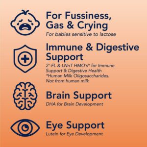 – Immune Support: Prebiotic 2′-FL HMO, commonly found in breast milk, aids growth of beneficial bacteria in baby’s digestive tract for infant immune support
