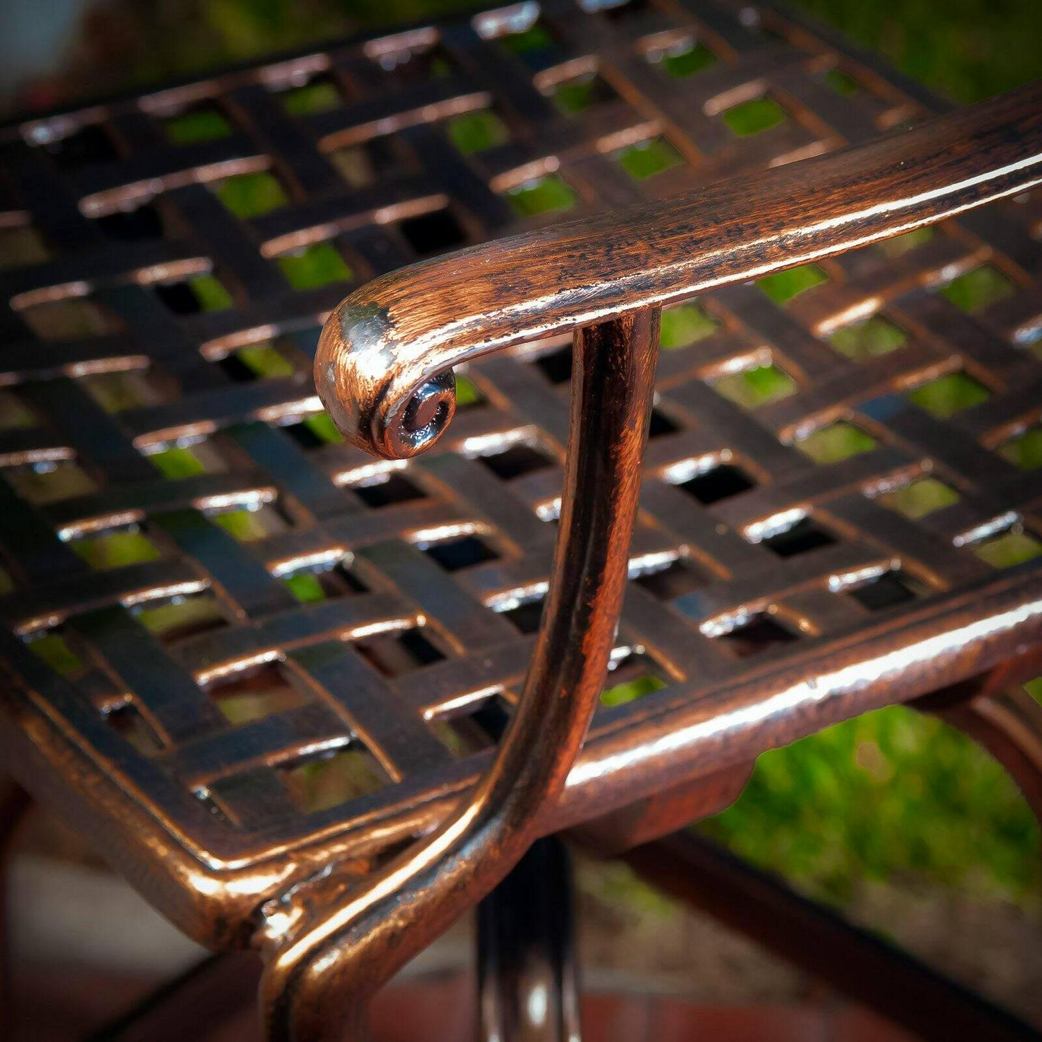 Add a touch of spice to your patio with the Santa Maria Bar Stools – 2 Pack and their curving contemporary style. This pair is made weather resistant to last for years, rain or shine. Being made from cast aluminum and iron, these chairs look the part with an alluring bronze finish.