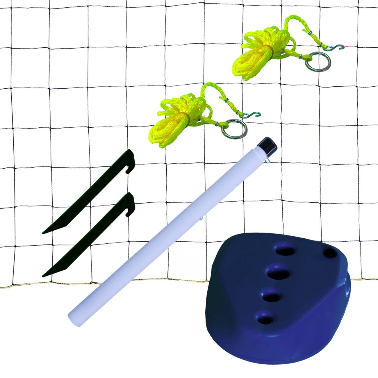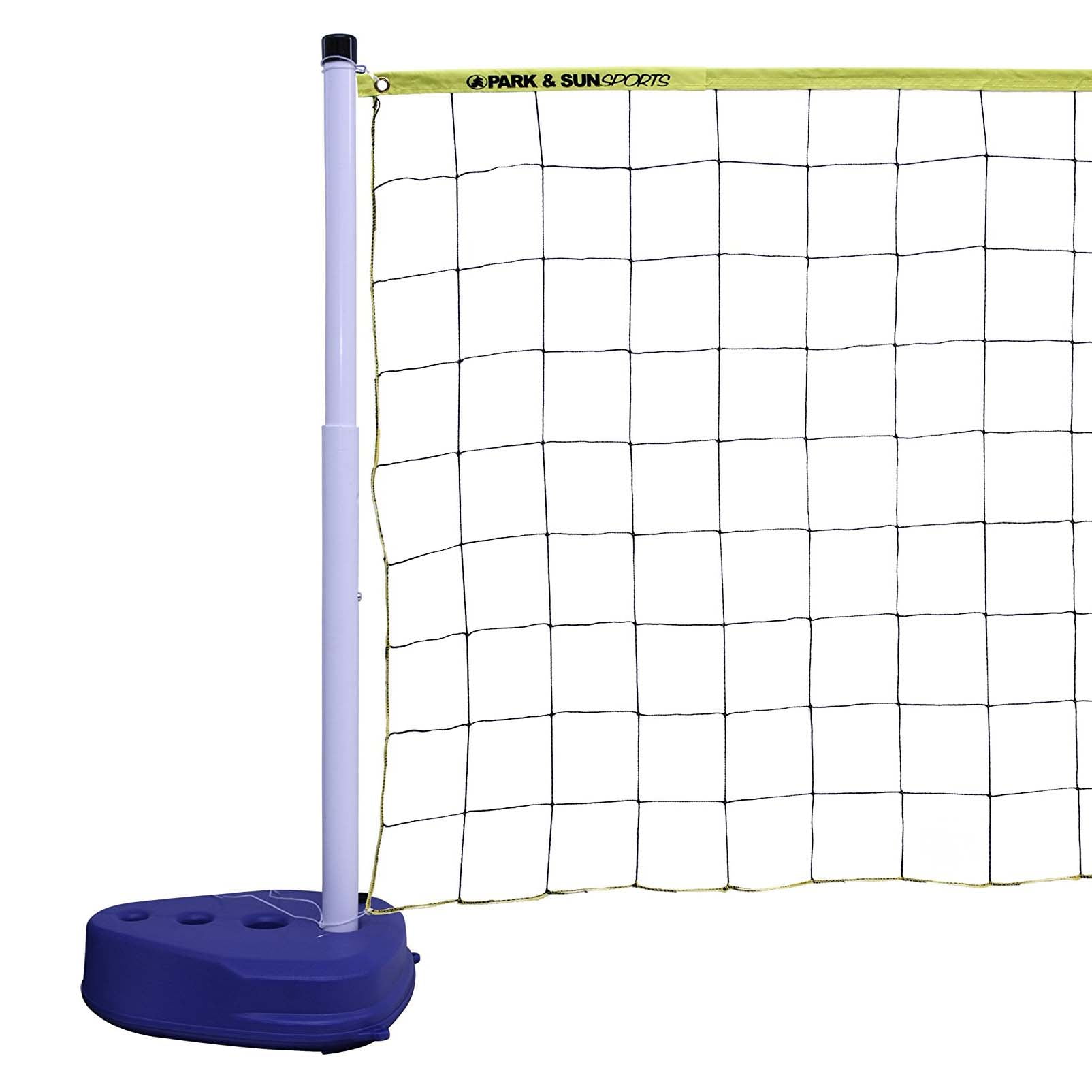 Crush the competition and win bragging rights on the ultimate field of battle, the water, thanks to the Park & Sun Sports Swimming Pool Volleyball Net Set. Spend more time playing and less time setting up with this easy-to-assemble net system. Plant the 2-piece, telescoping PVC poles into the support bases, which can hold either sand or water. The large 24-foot net can span entire pools so you can maximize the size of your “court.” The whole setup is held taut with the stake anchors and adjustment cords. Put on your swimsuit, bring some friends, and get your volley on today with the Park & Sun Sports Swimming Pool Volleyball Net Set.