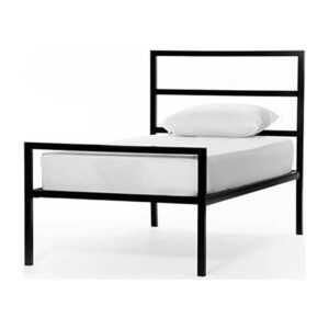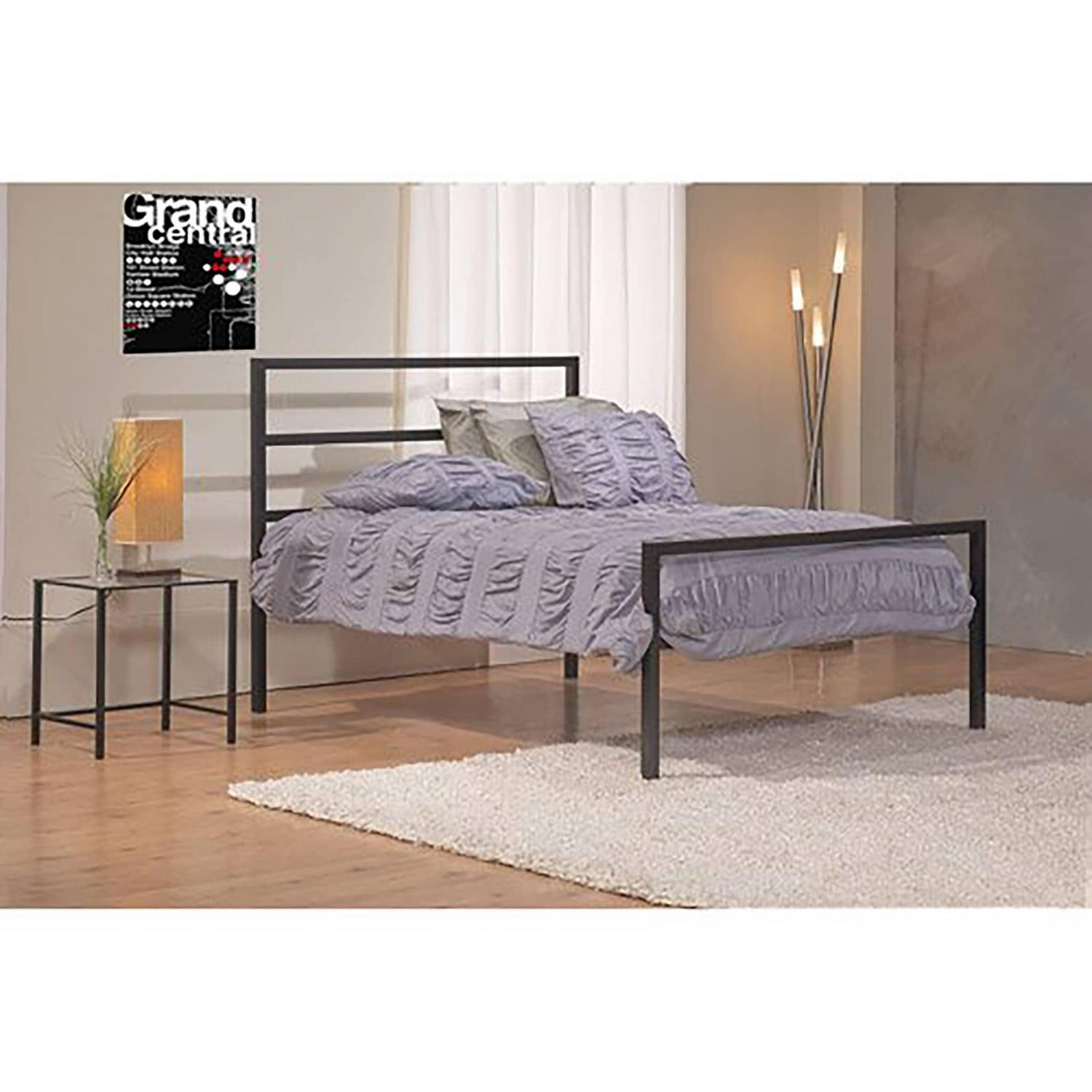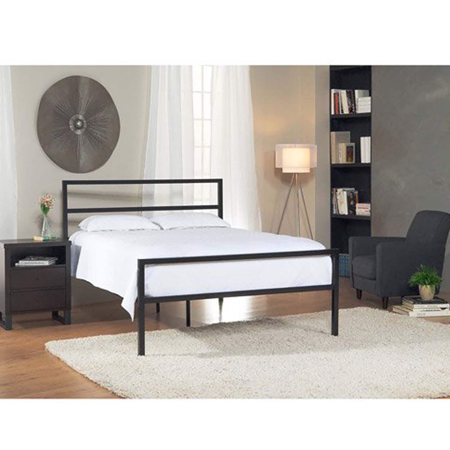 Simplicity and style meet functionality and strength with the Parsons Metal Bed. This platform bed frame features a sleek, minimalist design with a powder-coated steel frame for durability that lasts. An innovative wire mesh support system replaces the need for a box spring, while central support legs provide extra stability. The tall headboard and short footboard add modern flair, making this industrial-style bed a sophisticated addition to any bedroom. Available in black, this Mainstays bed is versatile enough to complement any decor style. Assembly is required, and instructions are included.