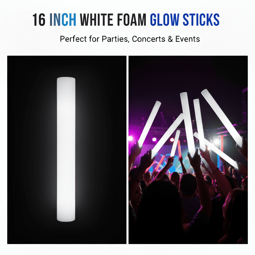 Party Glows Foam StickProduct Description There are so many amazing products to be used in parties but the best ones are light in weight, colorful in appearance and durable. If you are looking for such a lighted product then you have come to the right place. The LED flashing lights foam sticks are high in quality and you can buy them without having to go anywhere. The discounts on each product is dependent on the order quantity you put in the cart. Buy light up foam stick batons in bulk and avail more discounts along with free shipping option. Product Specification Product Name : LED Light Up 18 Inch White Foam Stick Batons Brand : Party Glowz Multipack Quantity-100 : LED FOAM STICK BATONS Color : White Features