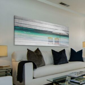 Craving the coastal scene Bring the nautical narrative back into your home with this watercolor painting print. Inspired by evenings spent on the shore, this piece showcases shades of coral blue and delicate neutrals that realistically represent the stunning seaside. This piece is printed on canvas before it s stretched over non-warping wooden bars for a gallery-wrapped look. With wall-mounting hooks included, this artful accent is ready to hang up as soon as it reaches your front door.