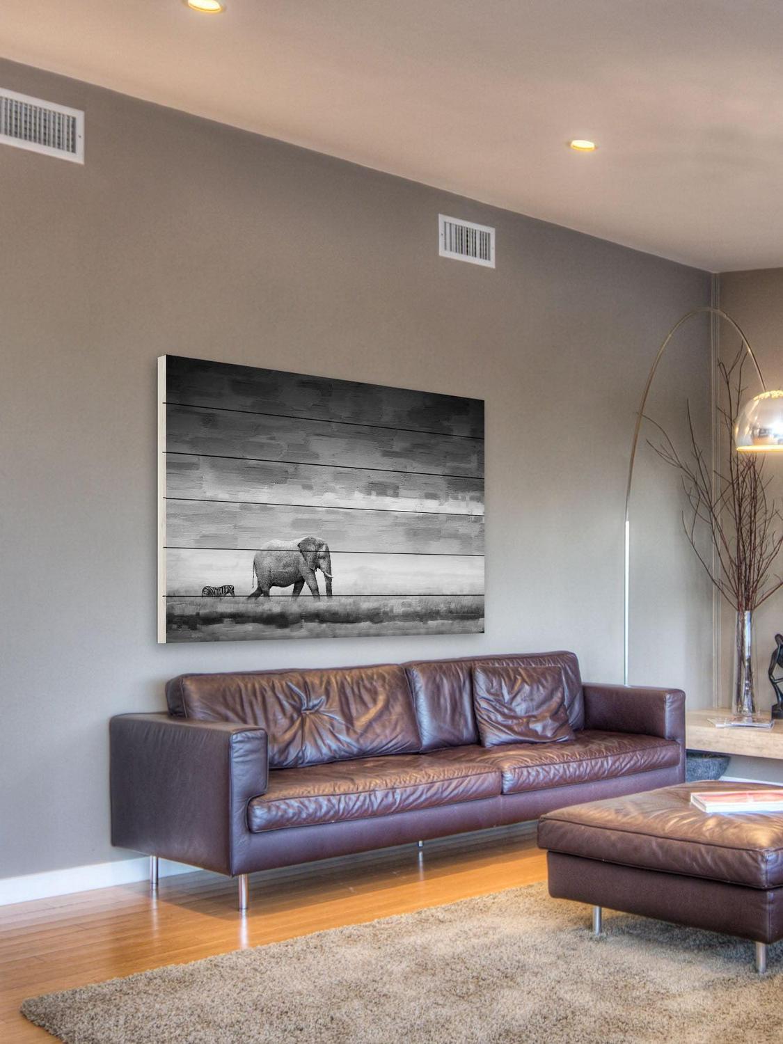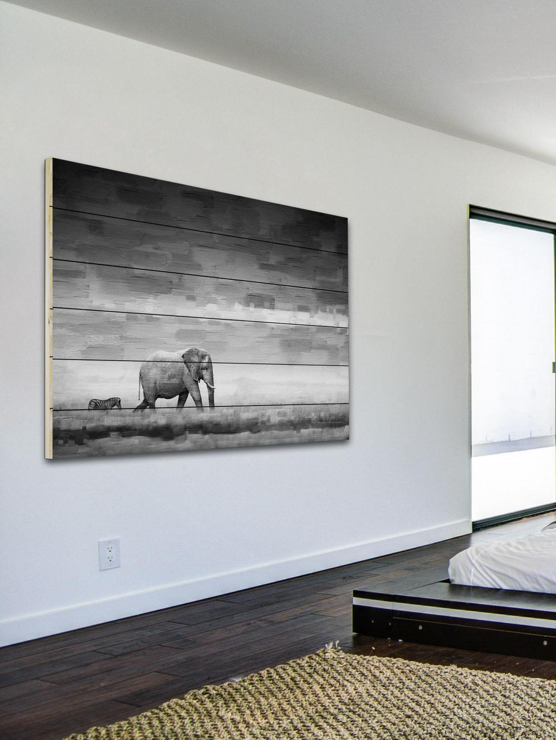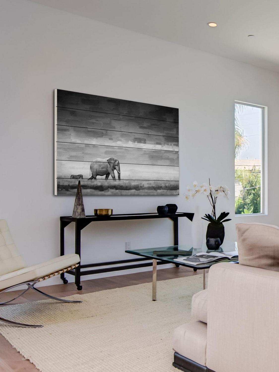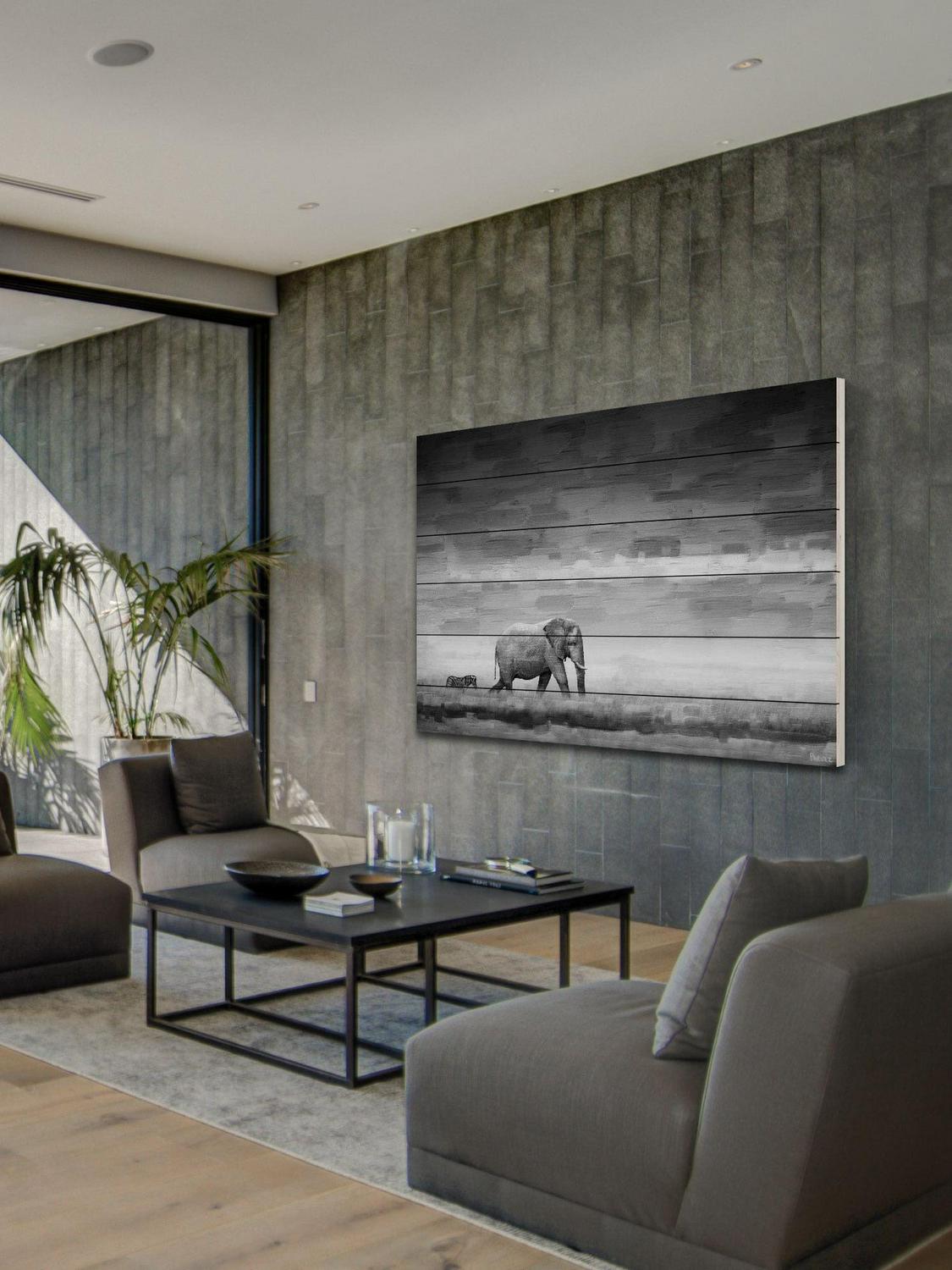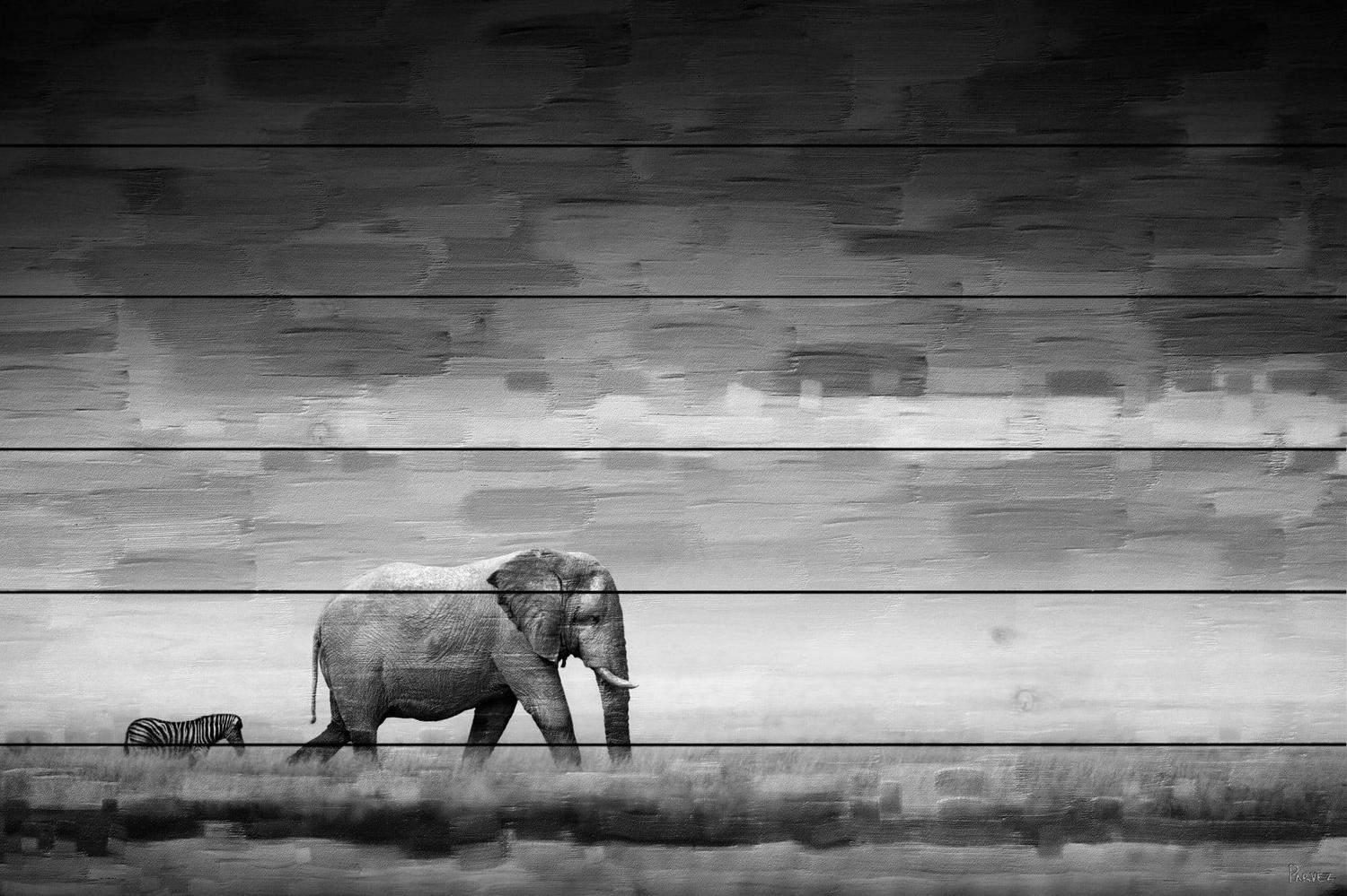 Parvez Taj Elephant Art Print on White Pine Wood