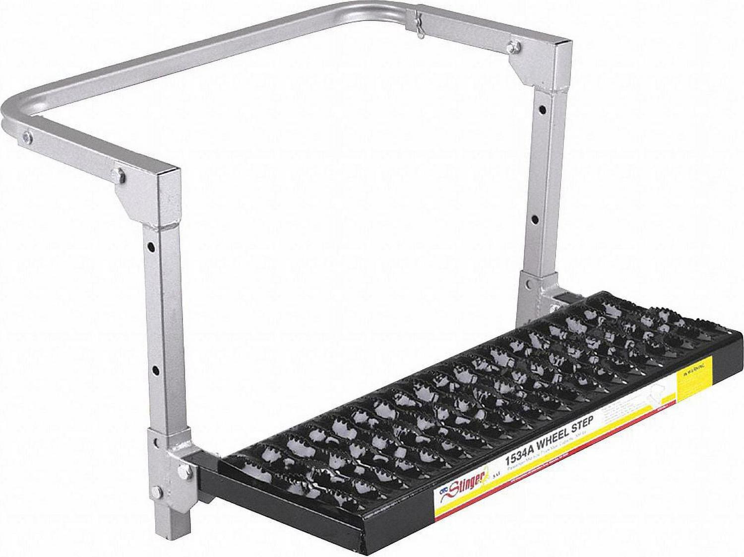 Features and Benefits: Provides quick, easy access to your vehicle’s roof for loading/unloading, Fits passenger and light trucks, Installs in seconds, Adjusts to fit 14 inch to 20 inch wheel sizes, 300 pound capacity and non-skid platform surface