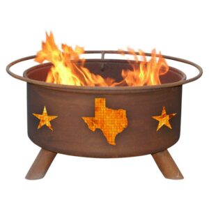 We are pleased to provide the finest products of outdoor living accessories. We have been warming up gardens, outdoor rooms, and patios with our impressive line of truly unique fire pits. Each pit comes equipped with a spark screen, BBQ grill, poker, legs welded securely in place and absolutely no assembly required. Our fire pits are sure to be a hit with any people. Crafted from cold-rolled steel. Handsome natural rust patina. SKU: PTN028.