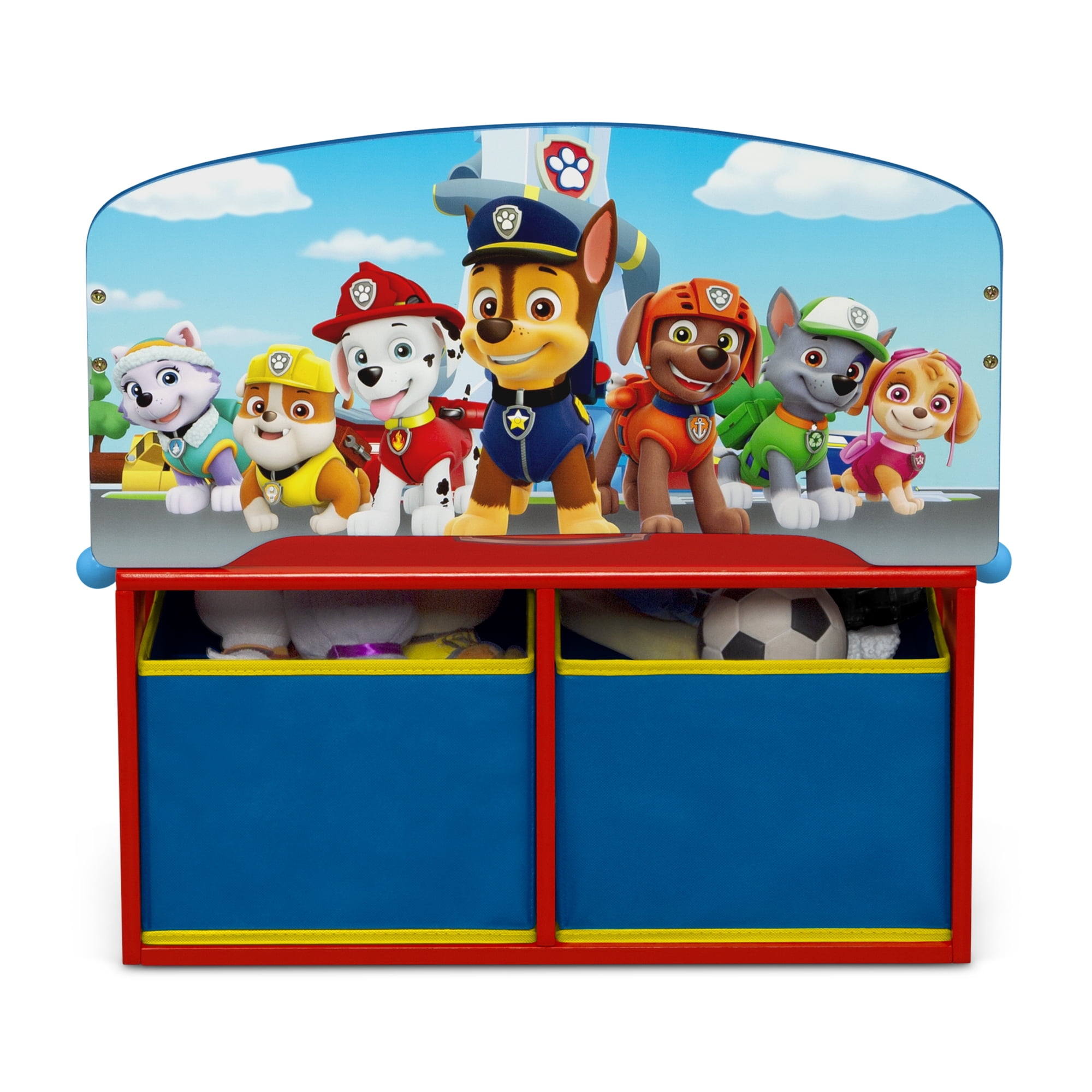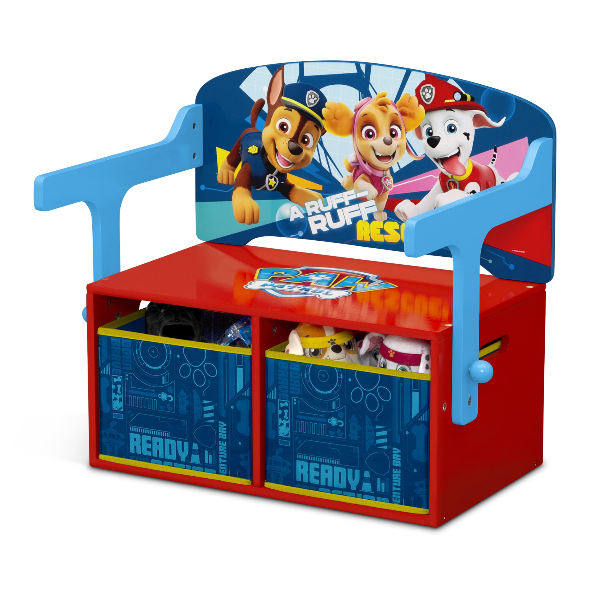 Bring action-packed adventure to your child’s space with the PAW Patrol 2-in-1 Activity Bench and Desk by Delta Children! With adorable artwork and a smart, multifunctional design, it’s the PAW-fect choice for your growing child. The incredibly versatile, 2-in-1 design converts from an activity bench with storage, to a desk—seamlessly transitioning from playtime to study time, crafts or even meal time, in seconds. Designed at the ideal, kid-sized height, the clever construction also boasts generous storage underneath with two fabric bins that are perfect for organizing toys, books or art supplies. A must-have for any PAW fan, the PAW Patrol 2-in-1 Activity Bench and Desk helps bring animated excitement to any activity with its vibrant graphics of Chase, Marshall, Skye and the rest of the pack. About PAW Patrol: PAW Patrol is a CG, action-adventure preschool series starring a pack of six heroic puppies: Chase, Marshall, Rocky, Zuma, Rubble, and Skye, who are led by a tech-savvy 10-year-old boy named Ryder. With a unique blend of problem-solving skills, cool vehicles and lots of cute doggy humor, the PAW Patrol works together on high-stakes rescue missions to protect the Adventure Bay community.