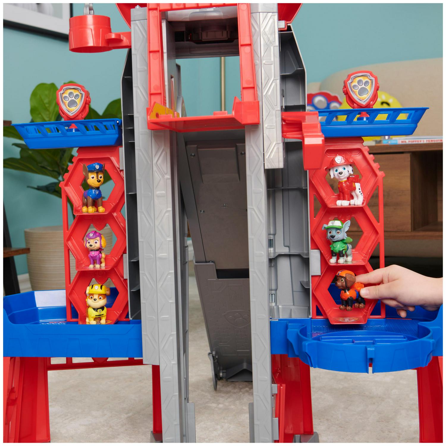Introducing the all-new PAW Patrol: The Movie Ultimate City Tower! This 3-foot-tall playset the tallest PAW Patrol tower yet brings the pups Adventure City headquarters from the big screen to life. It s jam-packed with amazing features to discover, including a transforming light-up rescue ramp, command center, vehicle lift, pup elevator, lights and sounds and so much more! With Chase s cruiser, a clip-on backpack, and all six PAW Patrol figures included, you can get straight to the fun right out of the box. Load Chase into his vehicle and get a quick tune-up before missions in the tower s garages, then clip Chase onto the pup elevator and send him up to the command center! Press the button to hear sound effects and activate the tower s lights! Rotate the holographic city map for more lights and use the pup selector to choose a pup for the mission. Chase is on the case! Place your figure down the slide to the gear-up area and clip-on Chase s backpack. Pull the vehicle lift up to the top of the tower and get ready to race to the rescue! Pull the handle all the way down to transform the Ultimate City Tower. The front panel opens up and the rescue ramp extends! Place your vehicle at the top and launch into action strips on the ramp light up as the vehicle rolls over it, just like in the movie! With the Ultimate City Tower, rescues have never been more exciting! Press the button on the backpack to launch projectiles (three included) and save the day! As you use your imagination to create your rescue adventures with this kids toy, there s room throughout the tower to play with all of the pup figures. For even more ways to play, the Ultimate City Tower works with the movie Deluxe Vehicles (each sold separately). PAW Patrol The Movie toys for boys and girls are the ultimate gifts for kids aged 3 and up. Requires adult assembly and 5 AAA batteries (not included). Experience the action and excitement of PAW Patrol: The Movie with the Ultimate City Tower!