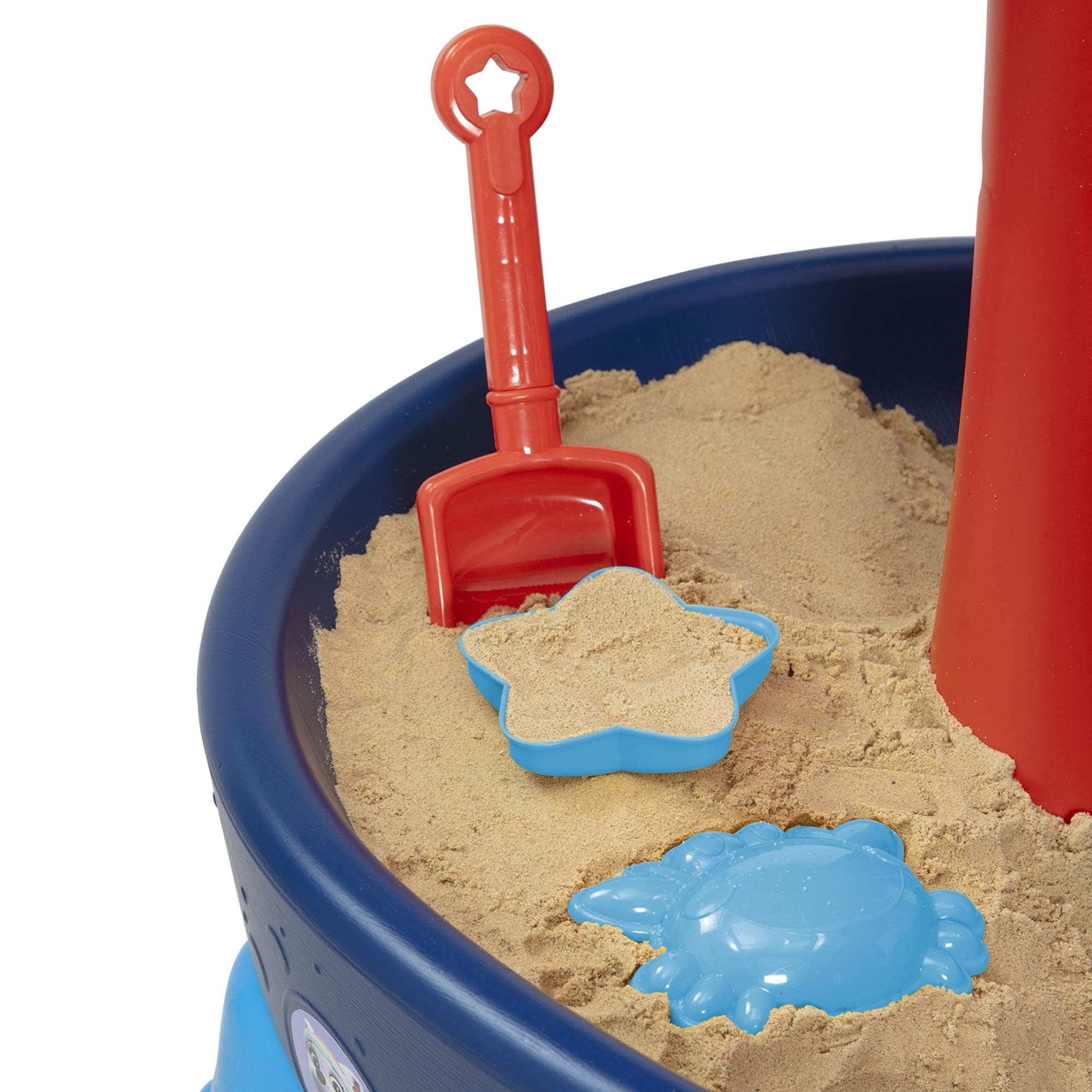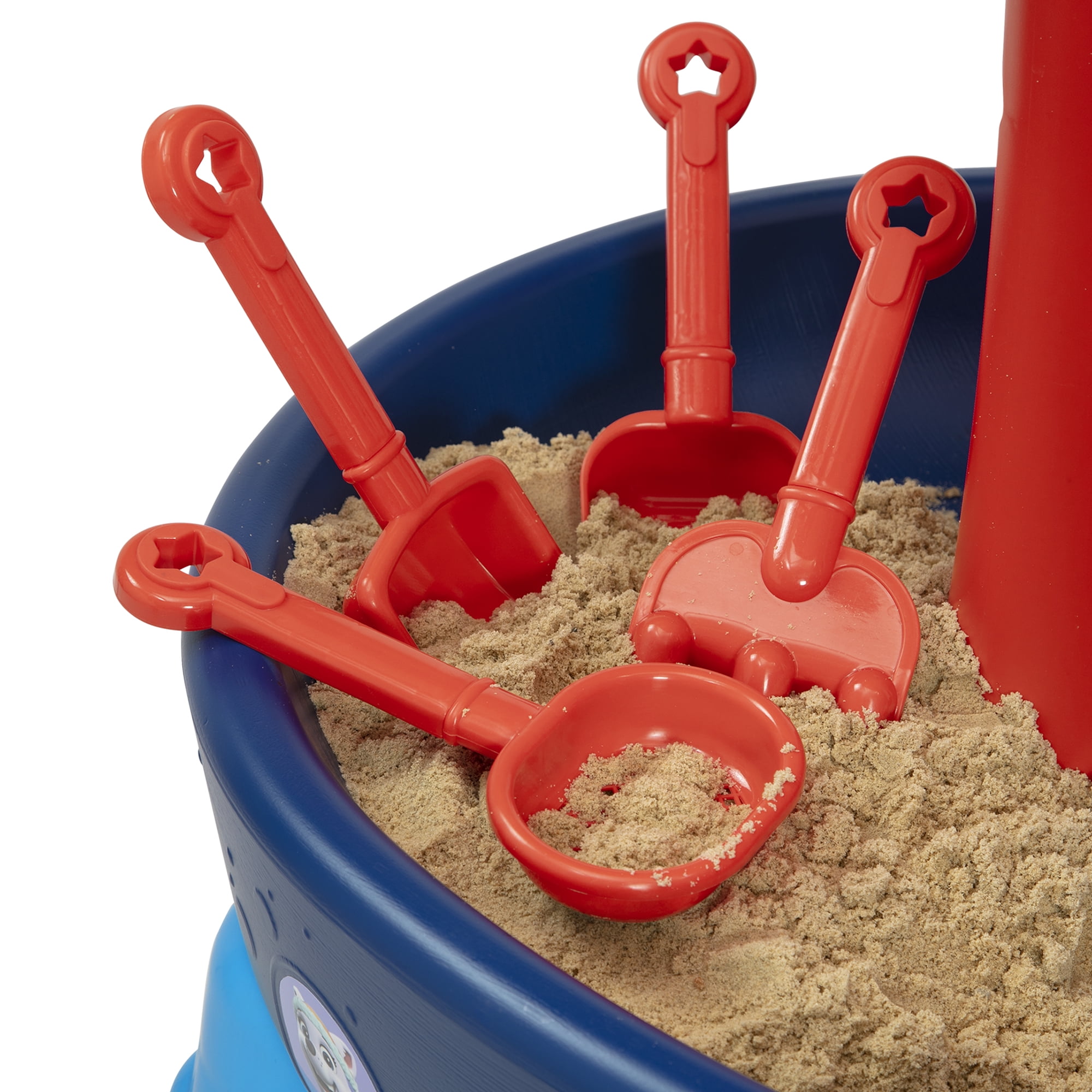 WHAT’S INCLUDED: 11 sand and water toys are included with this table | Set includes a bucket, watering can, 2 shovels, 2 scoopers, 3 sand molds and 2 character toys that can also be used as squirt toys