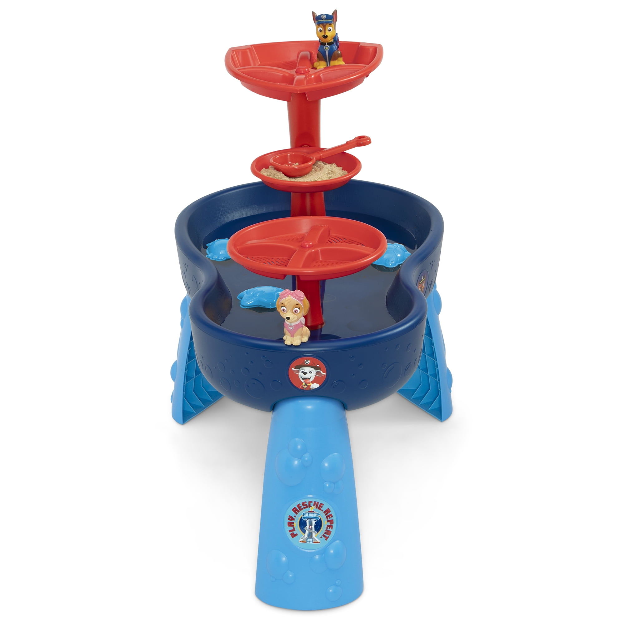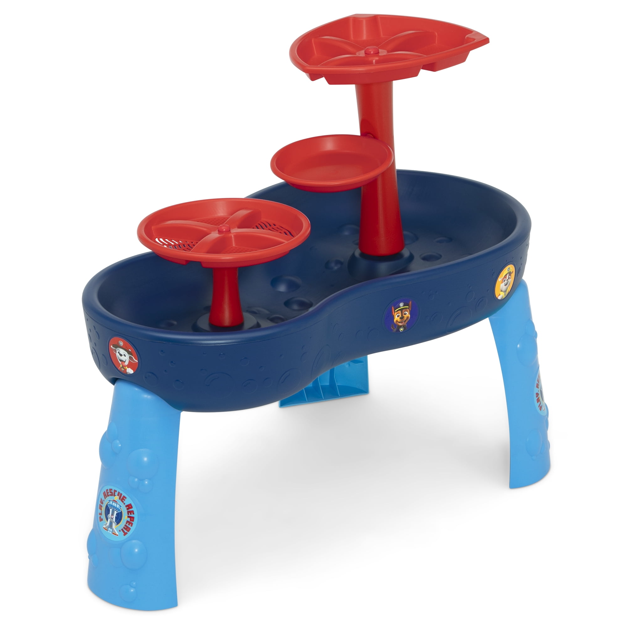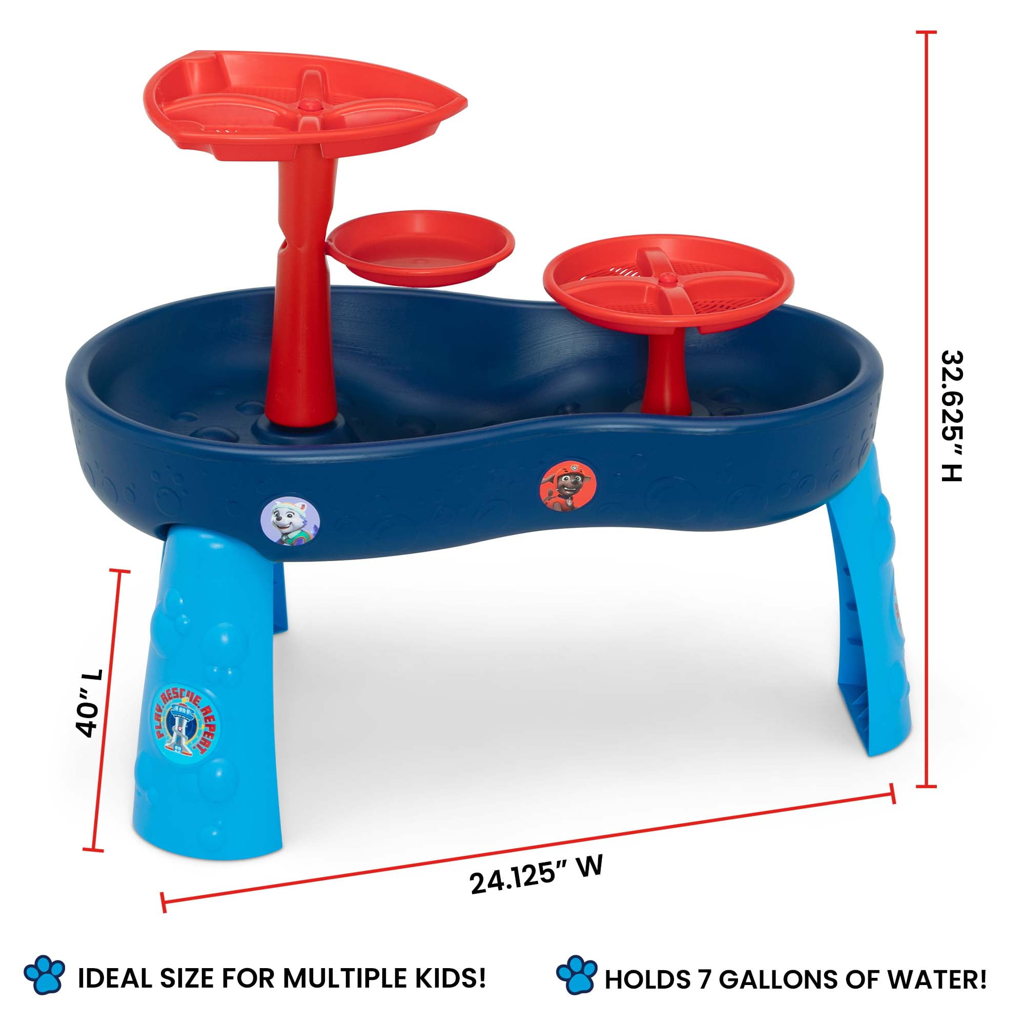 FOR PAW PATROL FANS: Kids will be amazed by the rotating PAW Patrol shield waterfall feature and spinning waterfall discs | Colorful weather-resistant PAW Patrol stickers decorate the water table