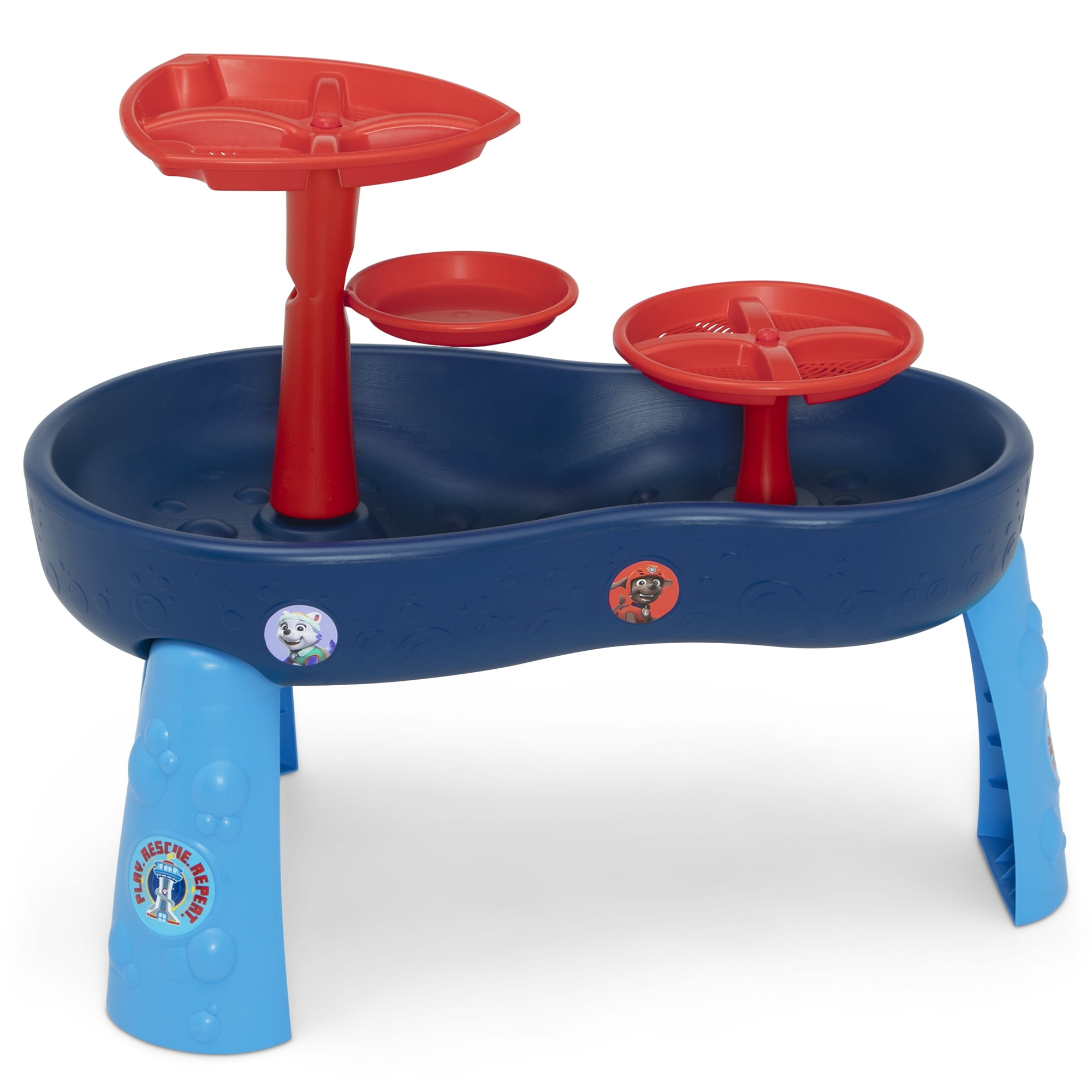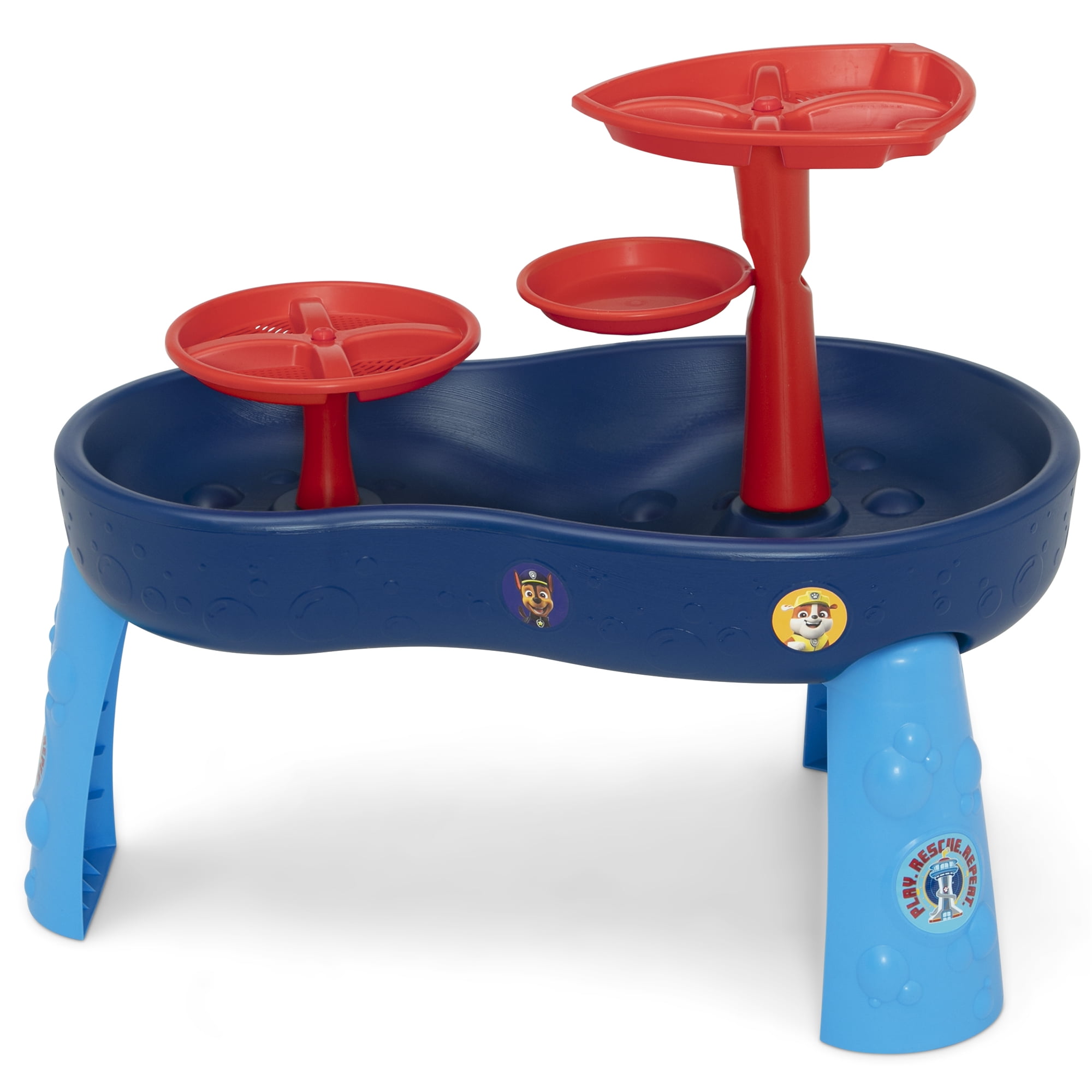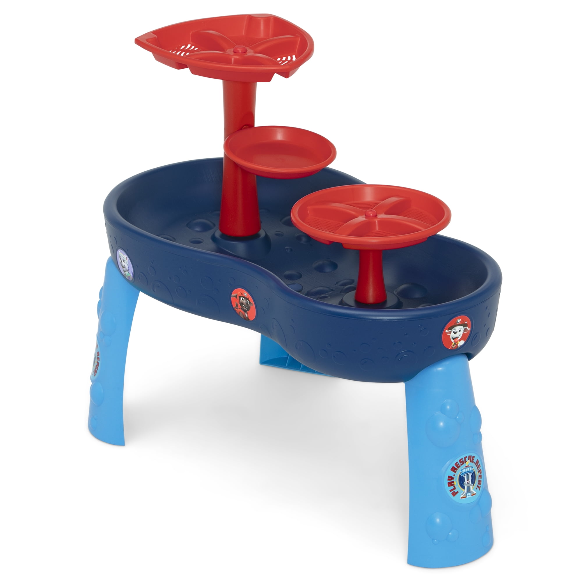 FOR PAW PATROL FANS: Kids will be amazed by the rotating PAW Patrol shield waterfall feature and spinning waterfall discs | Colorful weather-resistant PAW Patrol stickers decorate the water table