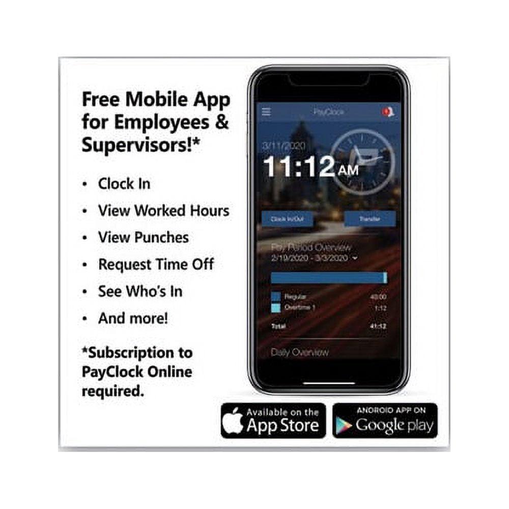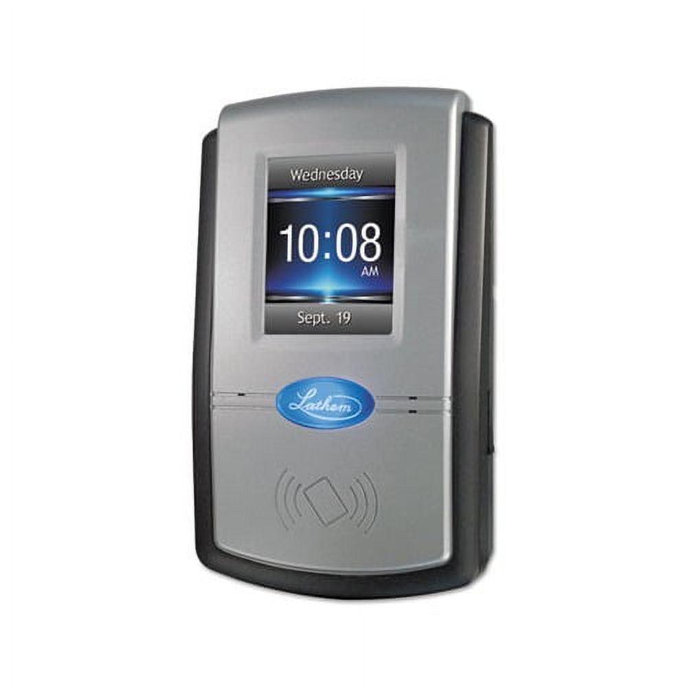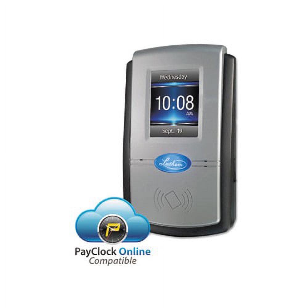 Automatically calculates worked hours including overtime and tracks time and attendance for 50 employees and can be easily expanded to 1,000. Employees enter PINs or use proximity badges to punch in and out, transfer departments or enter tips and amounts. Supervisors can add employees, edit punches and message them directly at the terminal for efficient workforce management. Comprehensive payroll and attendance data can be viewed on the screen, printed to reports, sent to Excel, or exported directly into your existing payroll software. Includes Lathem’s PayClock software that seamlessly integrates with your payroll software to allow for easy time and attendance management. Time Clock Type: Electronic Number of Employees: 50 Minute Increments: Automated Display Types: LCD.