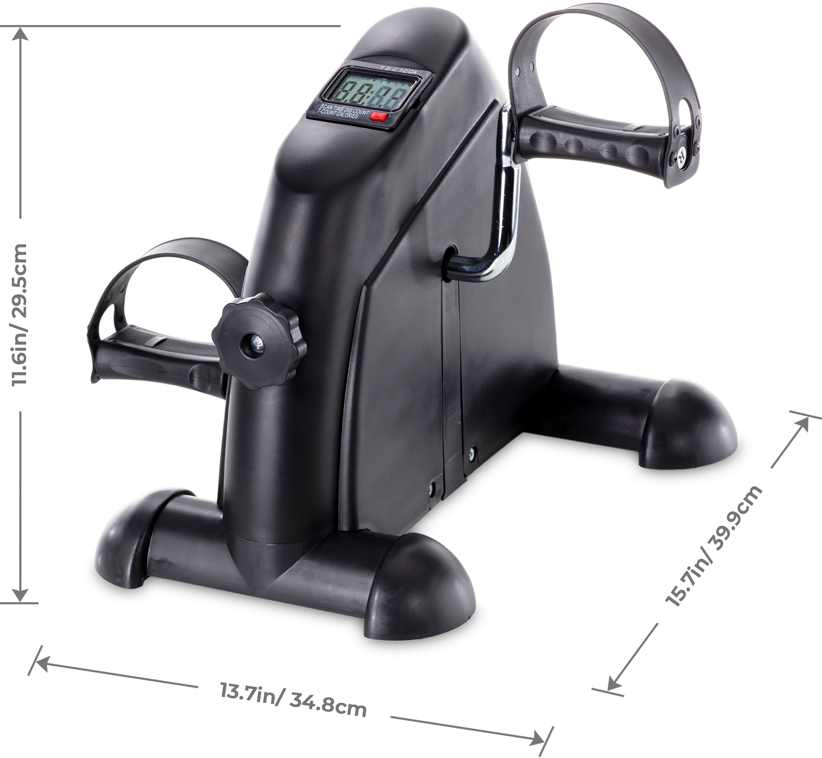 EXERCISE MADE SIMPLE: The Pedal Exercise Mini Cycle Bike takes the work out of workout. You can stay fit even when you can’t get to the gym. Place the mini bike under your desk and strengthen and tone your legs while you work, read or craft. DIGITAL DISPLAY MAKES TRACKING PROGRESS EASY: Each day that you use the Pedal Exercise Mini Cycle Bike, you’ll get stronger. The digital readout makes watching yourself improve simple and provides the motivation to keep on pedaling. PORTABLE AND STURDY: Our indoor exercise bike comes with a handle so that you can easily carry it from the living room to the bedroom or your home office. Store the bike in a closet or on a shelf for easy access whenever you feel like pedaling.