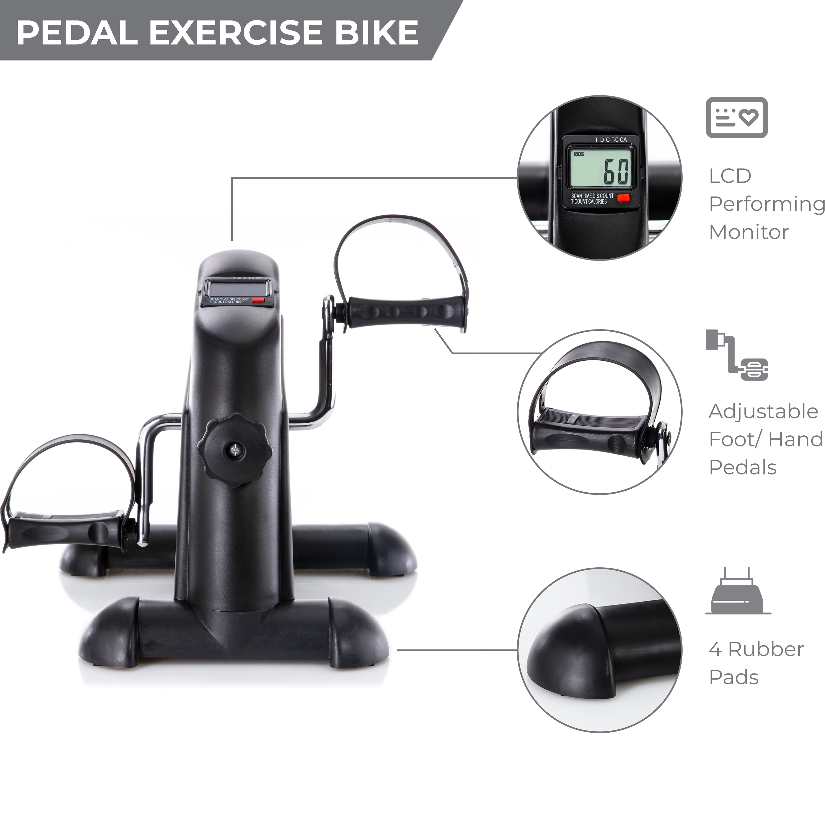 Pedal Exercise Mini Cycle Bike Great for Home or Office Workout – Tone and Strengthen Legs or Arms – Digital Display for RPMs, Calories, Time, Speed, Distance – Under Desk for Legs -Tabletop for Arms