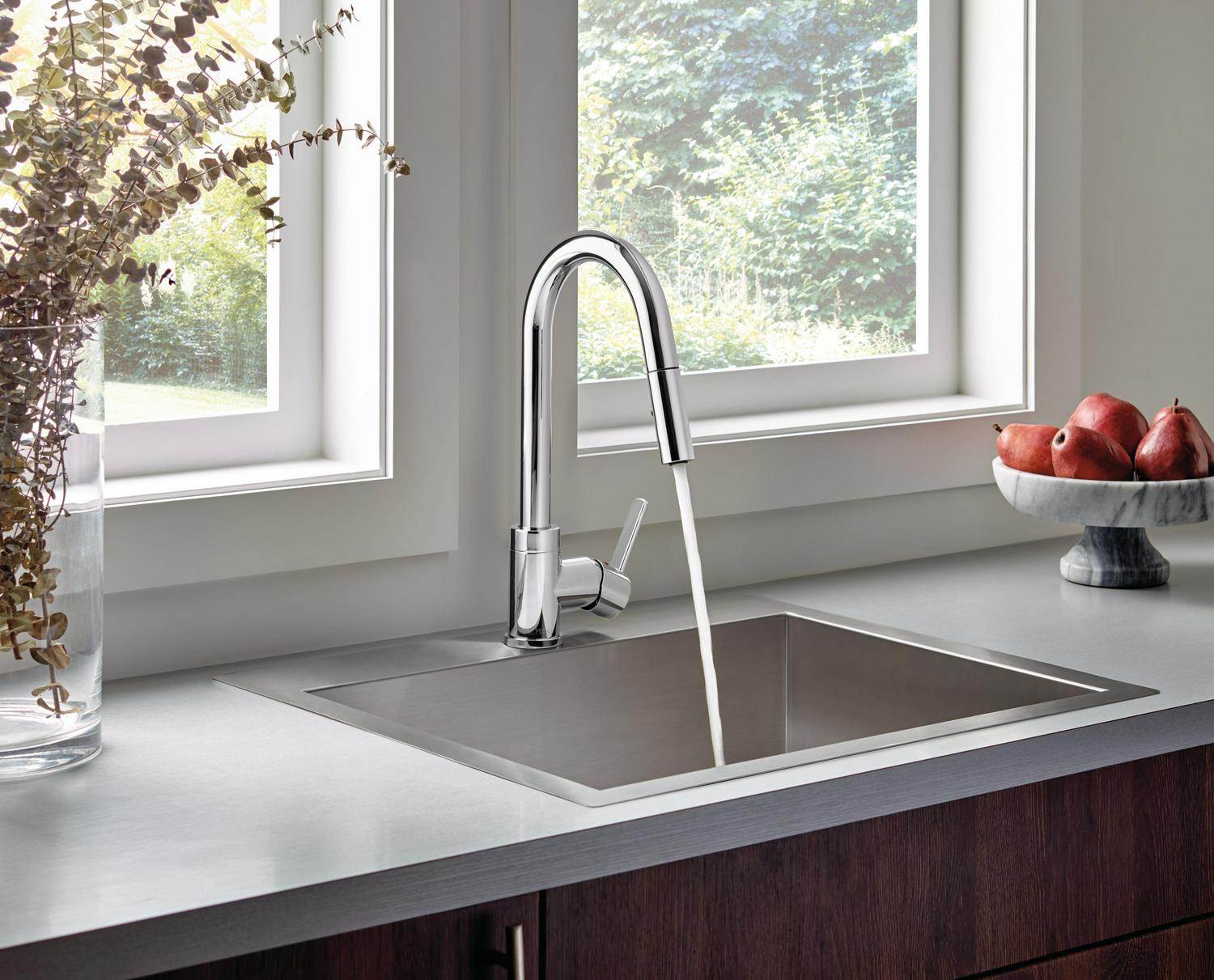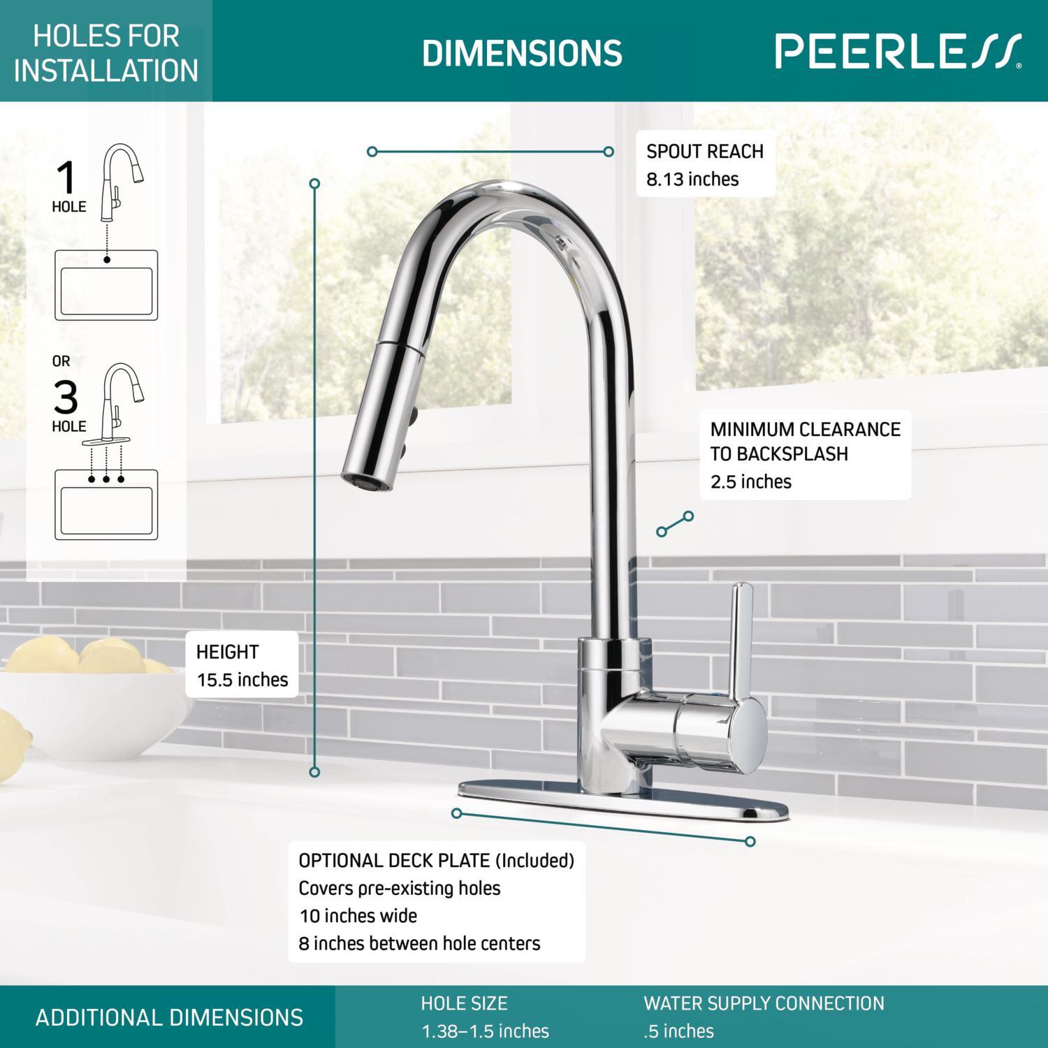 This Peerless Precept Single Handle Pull-Down Sprayer Kitchen Faucet in Chrome P188152LF is an easy and affordable way to update the look of your kitchen. Its simple design complements a variety of design styles. You can buy with confidence, knowing that Peerless backs this faucet with a lifetime limited warranty.