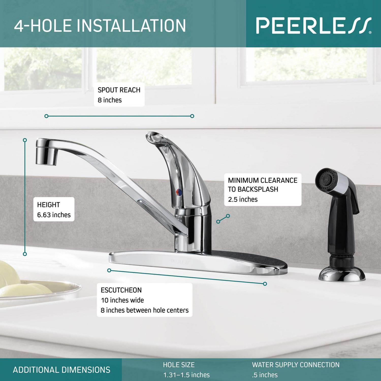 This Single-Handle Side Sprayer Kitchen Faucet in Chrome is an easy and affordable way to update the look of your kitchen. Its simple design complements a variety of design styles. The included escutcheon completes the ensemble for a more finished look. Limited lifetime, covers parts and finish defects
