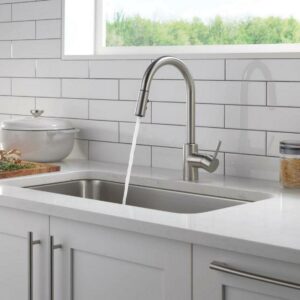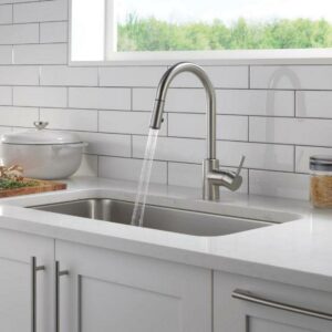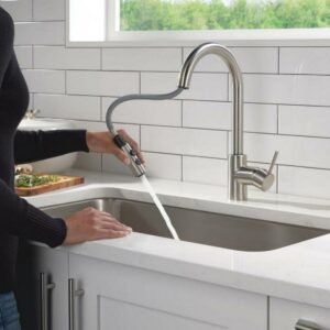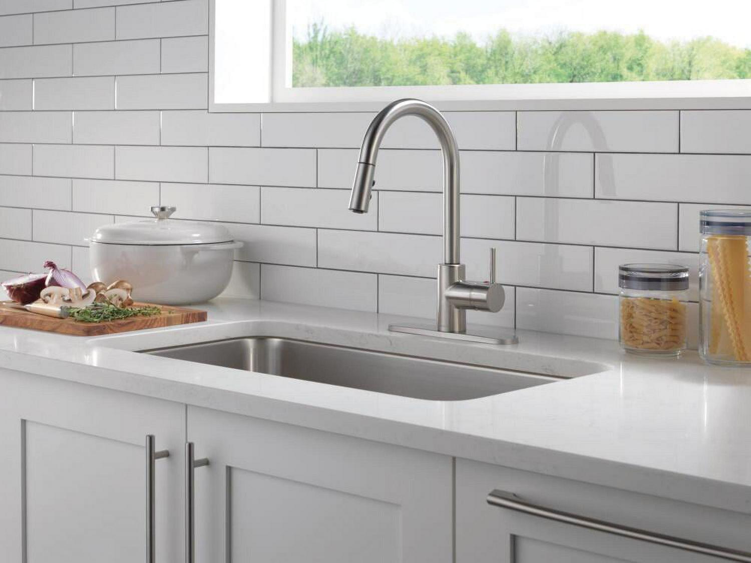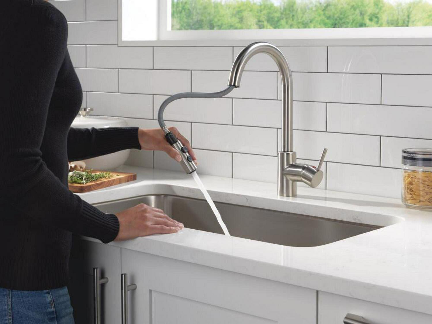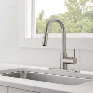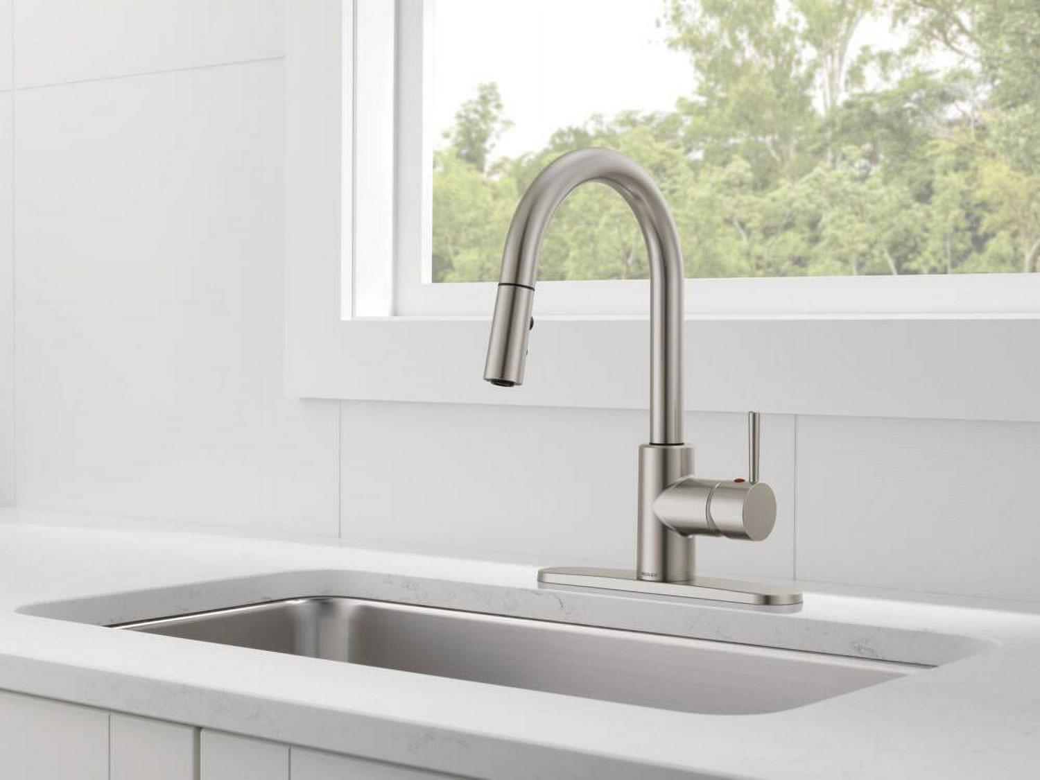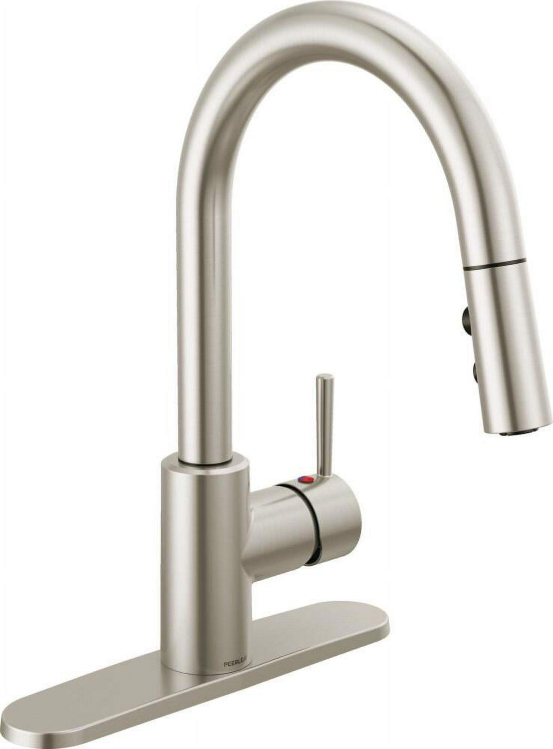This Peerless Single Handle Pull-Down Kitchen Faucet in Stainless Steel is an easy and affordable way to update the look in your kitchen. The streamlined profile complements a variety of design styles. An optional base plate is included to accommodate one- or three-hole, eight-inch installations. You can install with confidence, knowing that Peerless kitchen faucets are backed by our Lifetime Limited Warranty.