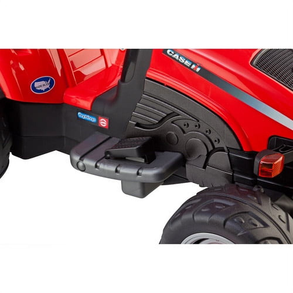 Case IH Lil’ Tractor and Trailer 6-Volt Battery-Powered Ride-On: ⢠2-1/4 mph with foot pedal accelerator ⢠Rechargeable battery powered ⢠Includes stake-side trailer ⢠Indoor or outdoor use ⢠Automatic brake activation ⢠Authentic Case Red color ⢠Adjustable seat ⢠Ages 2-4; Weight Cap. 55lbs