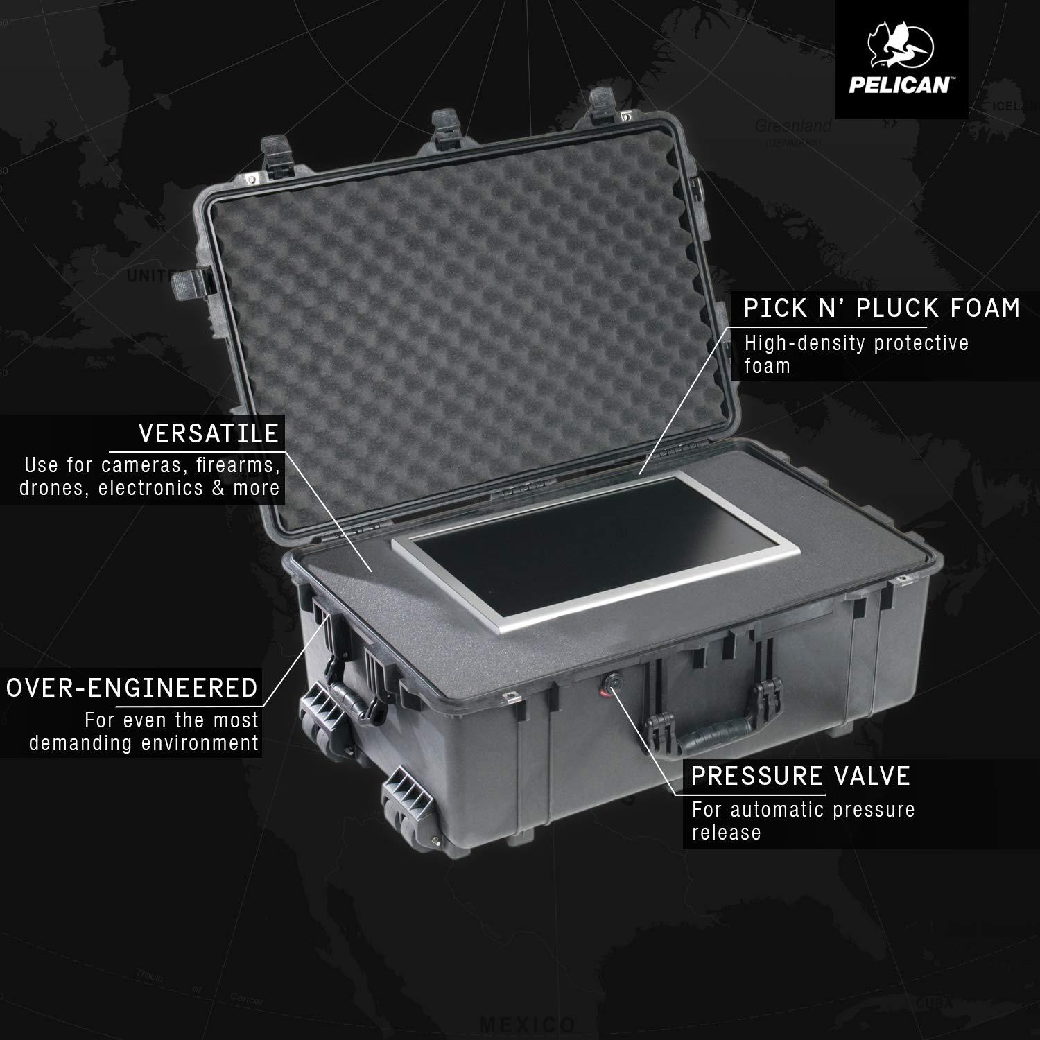 1650 CASE1650 Protector Case(TM) with Pick N Pluck(TM) Foam Watertight, crushproof & dustproof ; Retractable extension handle; 4 strong polyurethane wheels with stainless steel bearings; Easy-open double-throw latches; Open cell core with solid wall design; Strong & lightweight; O-ring seal; Automatic pressure equalization valve; Fold-down handles; Stainless steel hardware & padlock protectors; 2-level Pick N Pluck(TM) with convoluted lid foam; Interior dim: 10.5″H x 17.37″W x 28.5″D; Lifetime guarantee of excellence;