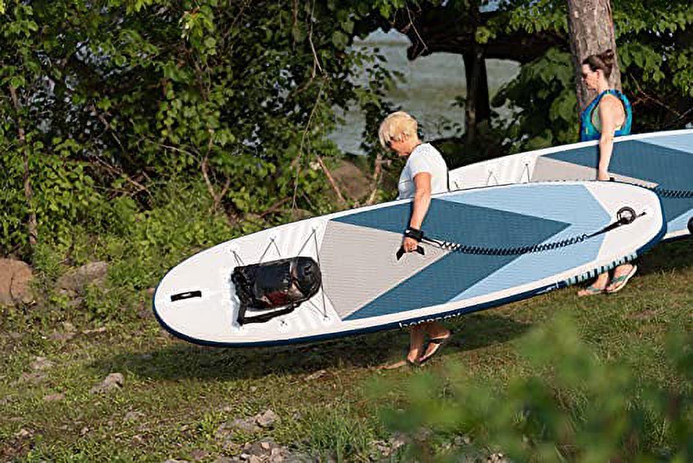 – Front bungee lacing: This inflatable SUP includes a front storage platform with a bungee cord, perfect to tie down your essentials on the water.