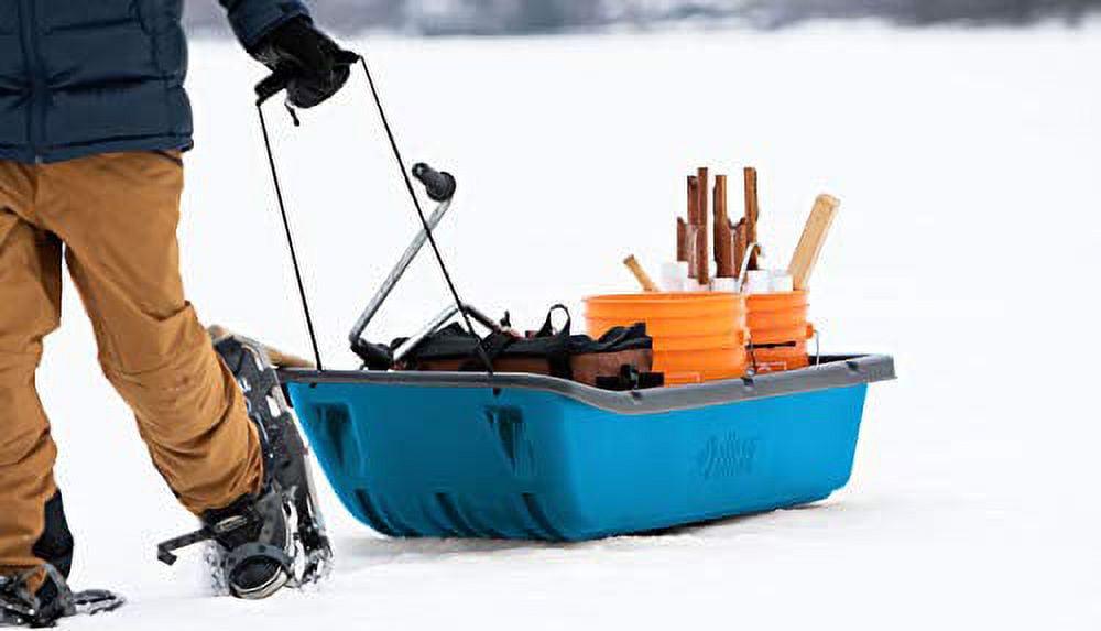 The TREK 52 utility sled is ideal for winter camping or a hunting or fishing excursion. Made of heavy duty RAM-X, it can resist the toughest conditions, so there’s nothing to challenge your sled. This all-season sled comes with a pull rope making it easier to transport, RAM-X runners to extend your sled’s life and a travel cover.