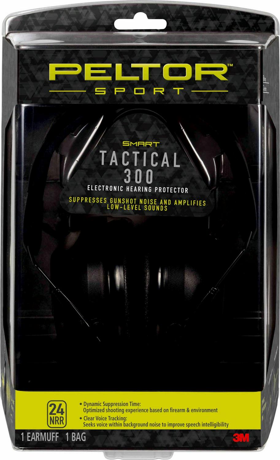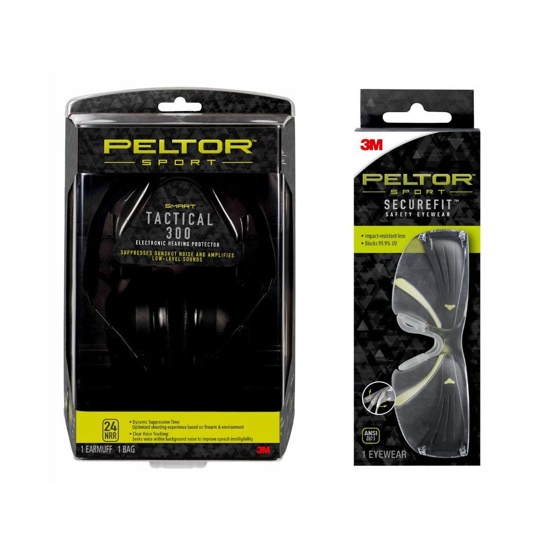Peltor Sport Tactical 300 Electronic Hearing Protector Earmuff, NRR 24 dB, Black with Peltor Sport SecureFit Safety Eyewear, Black/Green Frame, Clear Polycarbonate Anti-Fog Lens, 1 Pair