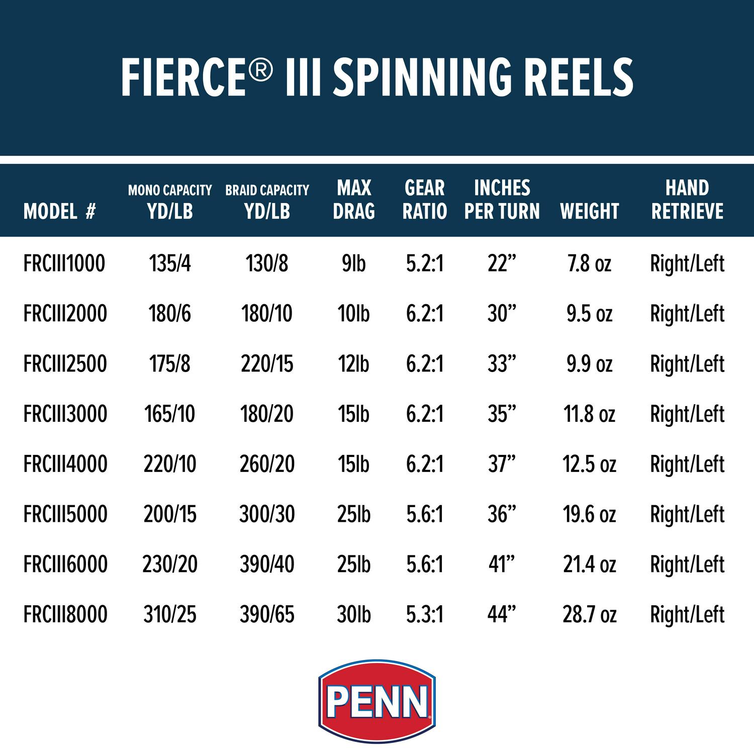 – FULL METAL BODY AND SIDEPLATE: The PENN Fierce III Spinning Reel is made with sturdy all-aluminum composition, featuring a forged and machined aluminum spool with Line Capacity Rings.
