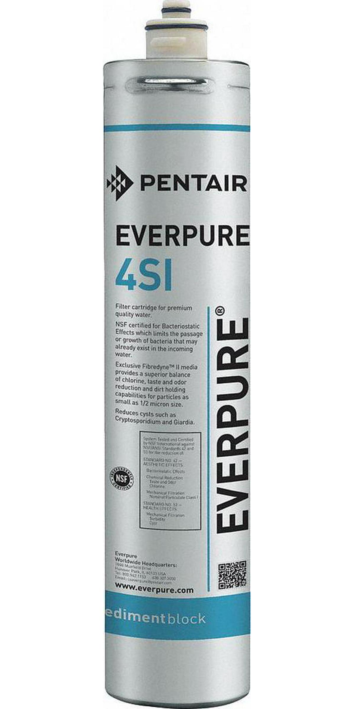 Quick Connect Filter, For Use With Filtration System, Reduces Scale, Micron Rating 0.5 micron, Flow Rate 2 gpm, Diameter 3 1/4 in, Overall Height 14 1/2 in, Service Life 15,000 gal, Filter Media Mechanical Filtration, Polyphosphate, Maximum Temperature 100 Degrees F, Application Ice Maker, Standards NSF 42, NSF 53, Series 4SI, Compatible Mfr. Model Number EV925924-75, EV927222-75, EV927241-75, Compatible with Grainger Part Number 5WFG6, 5WFG8, 5WFJ1, Maximum Pressure 125 psi