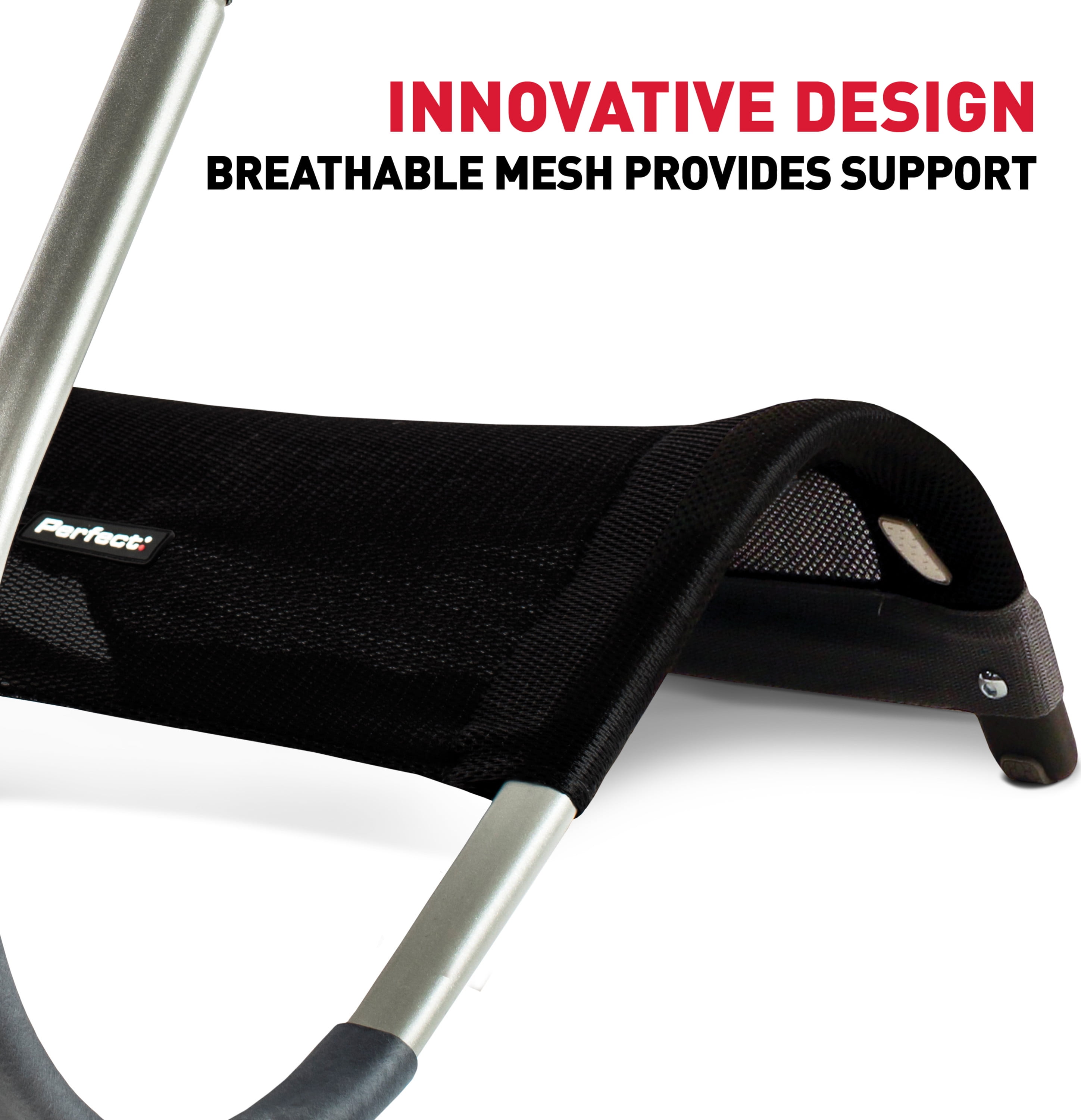 Perfect your abdominal crunches with the Perfect Fitness Ab Crunch. Reduce strain and support your head, neck and shoulders with a breathable mesh canopy so you can focus on targeting your abdominal muscles. Perform crunches comfortably and effectively. Flip over for push-ups and dips for a total body workout. Perfect for all fitness levels.