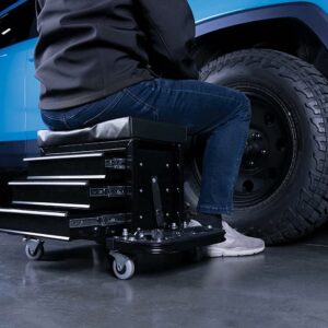 – Creeper Seat with 3-drawer mechanics tool box and 2-foldable magnetic tool trays
