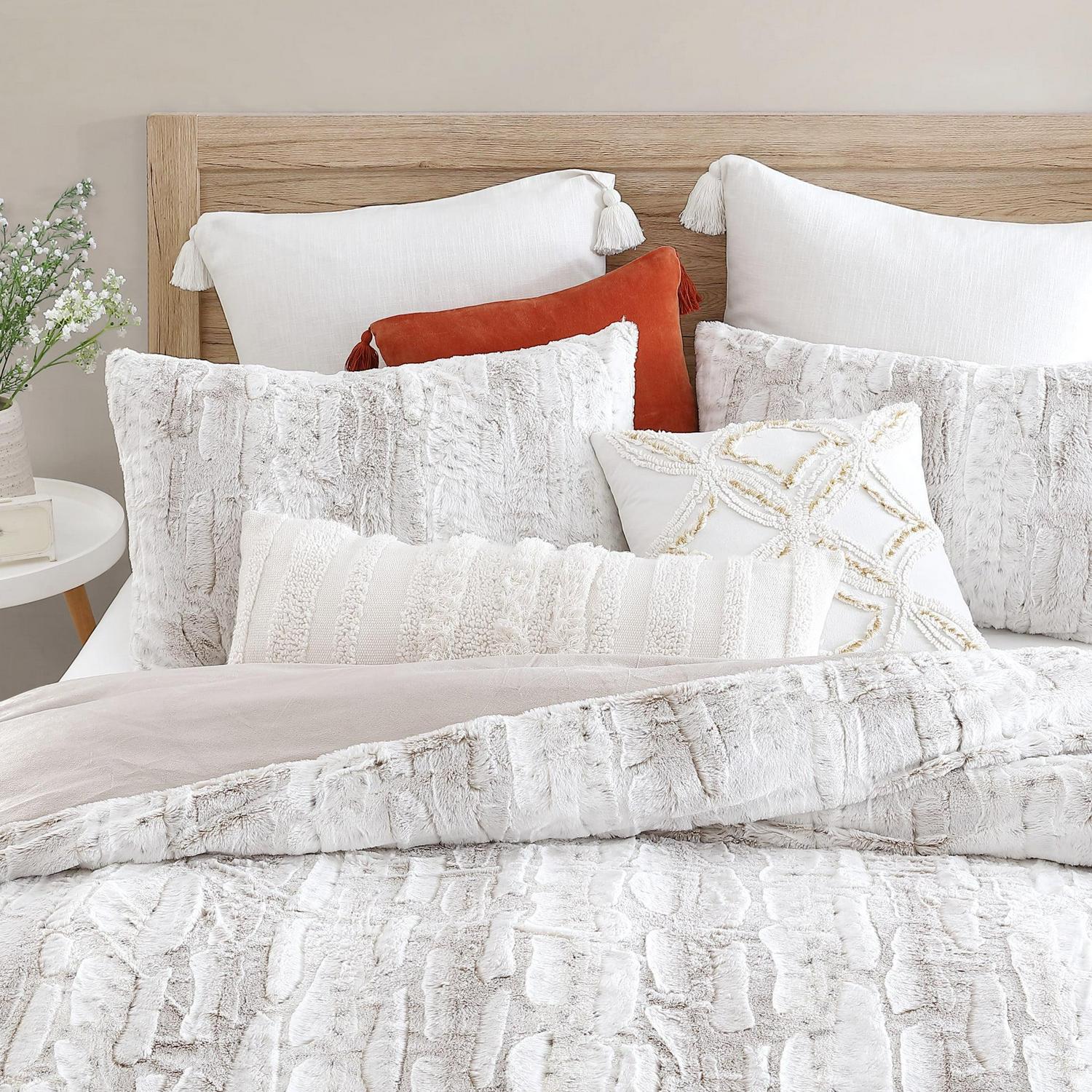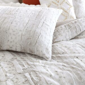 Peri Home Snow Leopard 3 Piece King Comforter Set, Ivory, Cotton, Faux Fur, Polyfill, Adult
