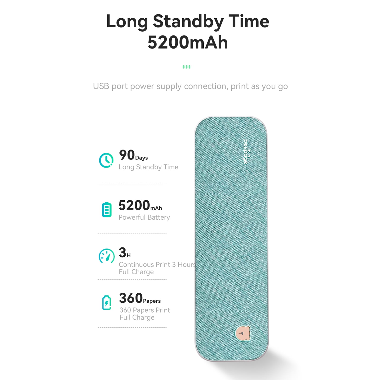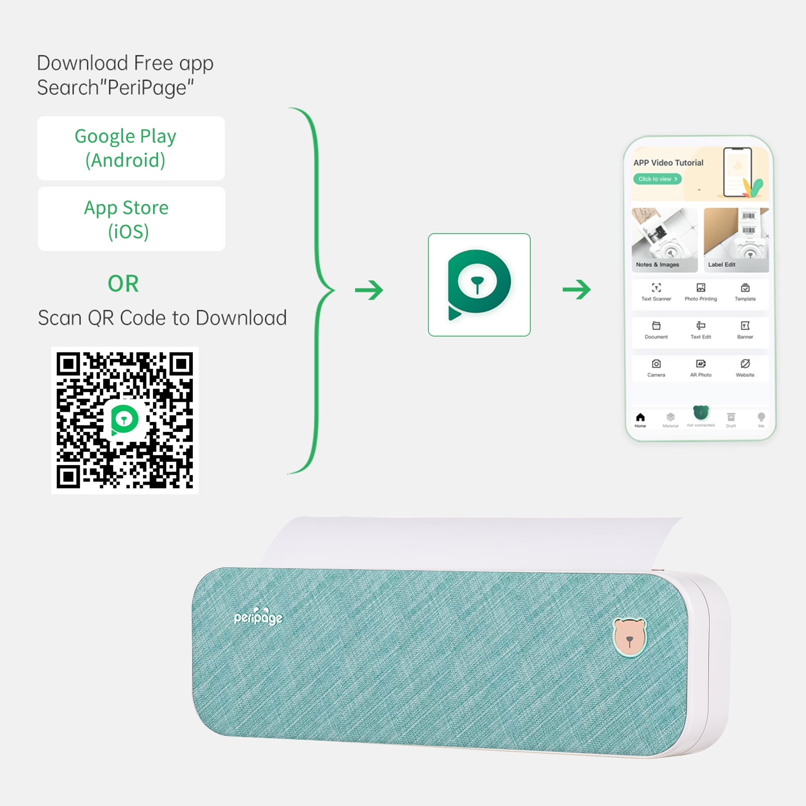 Mobile App Printing (Bluetooth Connection): 1. Press and hold the power button for 2 seconds to turn on the printer. 2. Search PeriPage and download PeriPage App in the mobile app store. 3. Open the App, and search for the connected printer according to the prompts in the App. Or double click the power button to print the QR code, and scan the code with the App to connect to the printer. (Tips: Don’t connect printer in the mobile phone Bluetooth settings.) 4. Select and edit the content to be printed in the App, confirm and print. App download: Search for PeriPage on Google Play or AppStore, or scan the QR code to download APP. Computer Printing (USB connection): 1.Press and hold the power button for 2 seconds to turn on the printer. 2.Connect the printer to computer with the original USB cable. 3.Visit the official website to download and install printer driver. 4.When printing the required documents, select the printer to print. Specification: Model: A40 Color: Sky Grey Battery: Built-in Rechargeable Battery 2600mAh x 2, 7.4V Continuous Working Time: 3hrs Standby Time: 30 Days Input: 5V 2A Connection: BT, USB Type-C Printing Technology: Thermal Printing Product Size: 265x80x45mm/10.4×3.1×1.8in Weight: 658g/23.2oz Package Size: 290x160x65mm/11.4×6.2×2.5in Package Weight: 982g/34.6oz Notes: 1. Please read the user guide carefully when you start to use the product. 2. Please download the app before use and connect the device via app. 3. Please make sure that only thermal paper can be used in printing. 4. The macOS is not supported now. 5. If the printing goes wrong, please check the installation of paper roll or contact us. Thanks! Packing List: 1 x Thermal Printer 1 x USB Cable 1 x A4 Thermal Paper Roll 1 x User Manual If you are interested in PeriPage Thermal Printer, you can click the following for more detailsï¼ PeriPage Thermal Printer Pink color PeriPage A4 Paper Printer, Gray color PeriPage 2 Rolls Thermal Paper PeriPage Fold Thermal Paper, 100 pcs PeriPage Inkless Mobile Printer, A4 Wireless Bluetooth Travel Printer, Portable Thermal Transfer Printer Compatible with Android and iOS, Support 2”/3”/4′ Paper Width Printing PDF File Webpage Contract Picture, It’s convenient to be able to print on the go and best gifts