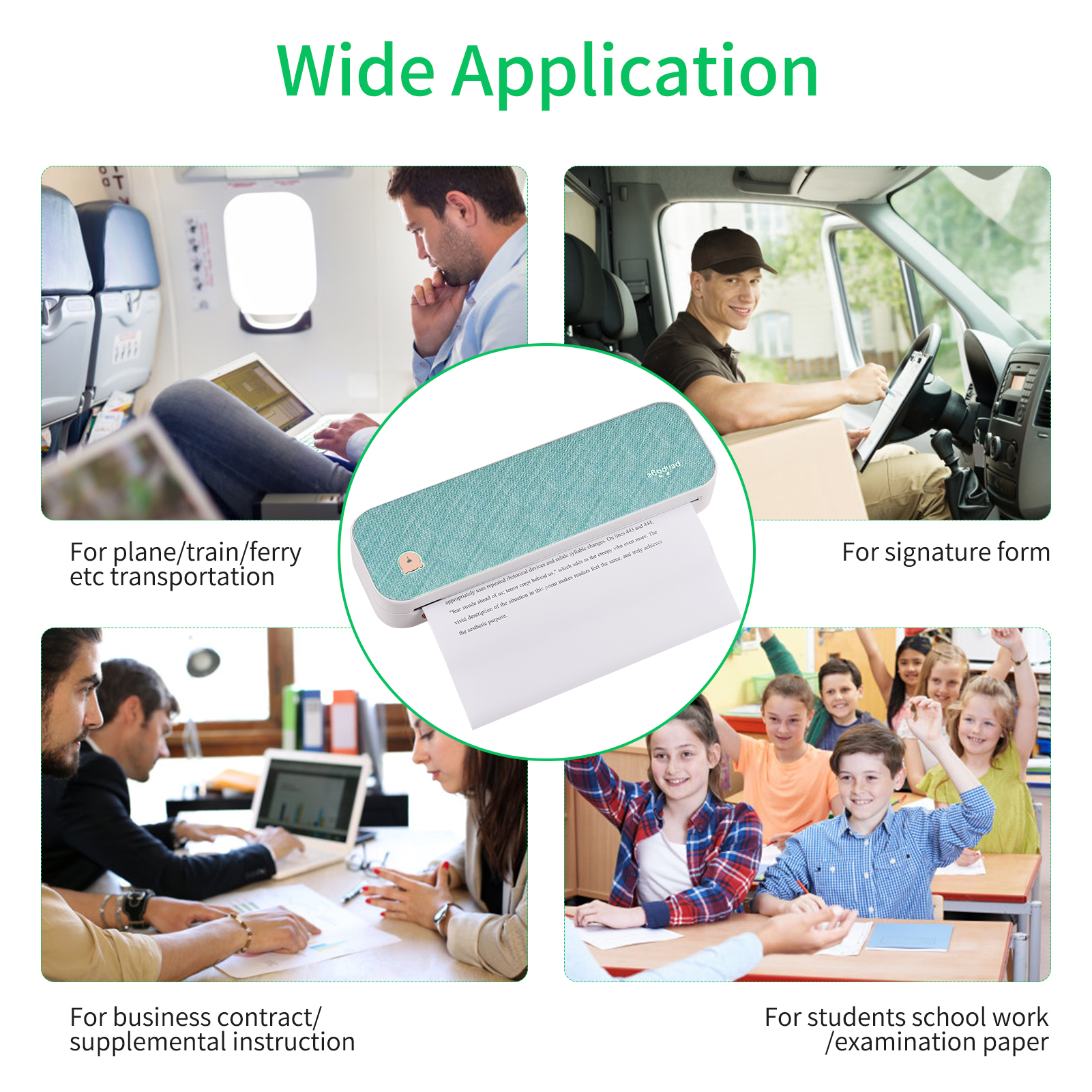 【All in One Printer】PeriPage A40 mobile printer, ideal for printing PDF file, test paper, webpage, contract, photo, picture, etc. Long standby time and with app which has a variety of materials and typography, easy to set up and print, an excellent assistant for study and office work. 【Multiple Printing Size】With 2 clips to adjust the paper slot width, A40 thermal printer is support 210mm/107mm/77mm/56mm (A4/4″/3″/2″) width of thermal paper now, different sizes of paper to meet your printing needs on multiple occasions. And support use with roll paper and folding paper as well. 【Convenient for Your Life】With compact size – 265x80x45mm/10.4×3.1×1.8in. Built-in 2pcs 2600mAh rechargeable batteries, which can continuous print 3hrs after full charged, long standby time of 90 days, great for carry to business travel, school etc. You can print invoices, contracts, lists and exam documents contracts on site with your phone or computer. 【High Compatibility】Support IOS and Android mobile phone by bt connection. Turn on the printer by pressing the power button for 2sec first. For Mobile Device, download the APP (PeriPage) first and enter it and connect with the machine through BT function. If you need to print with the computer, please download the driver first. (The driver is not support macOS for now) 【Premium Printing Quality】 A40 printer equipped with high quality print head, which has over 50km print life and printing about 168000 A4 Paper. Adopt advanced thermal printing technology, no ink cartridges or consumables are required, energy saving and environmental friendly. (Recommended to buy PeriPage original thermal paper together for clearer printing, not compatible with plain paper) 【Professional Customers Service】We provide 12-month warranty and 24-hours after-sale service. If you don’t know how to use it, you can contact us for detailed instructions. We have a very friendly service. All in One Printer|Multiple Printing Sizes|Monochrome|Convenient for Your Life|High Compatibility|Premium Printing Quality