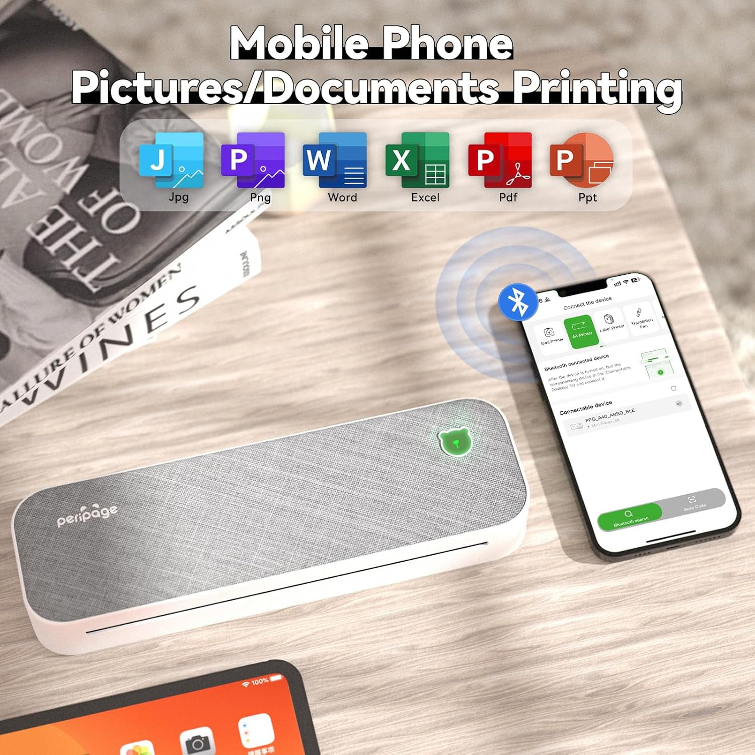 From the intuitive interface to the sleek design, every detail has been considered to make printing as easy and enjoyable as possible. Whether you’re a busy professional or a student on the go, our printer is designed to meet your needs and exceed your expectations. With low-cost ink-free printing and a compact, portable design, you can print anytime, anywhere, without breaking the bank. PeriPage A40 mobile printer, ideal for printing PDF files, exam papers, web pages, contracts, photos, pictures, etc., is a great assistant for study and office work. 1 additional roll of thermal paper is included, which can be printed immediately after receiving the package. Mobile App Printing (Bluetooth Connection)