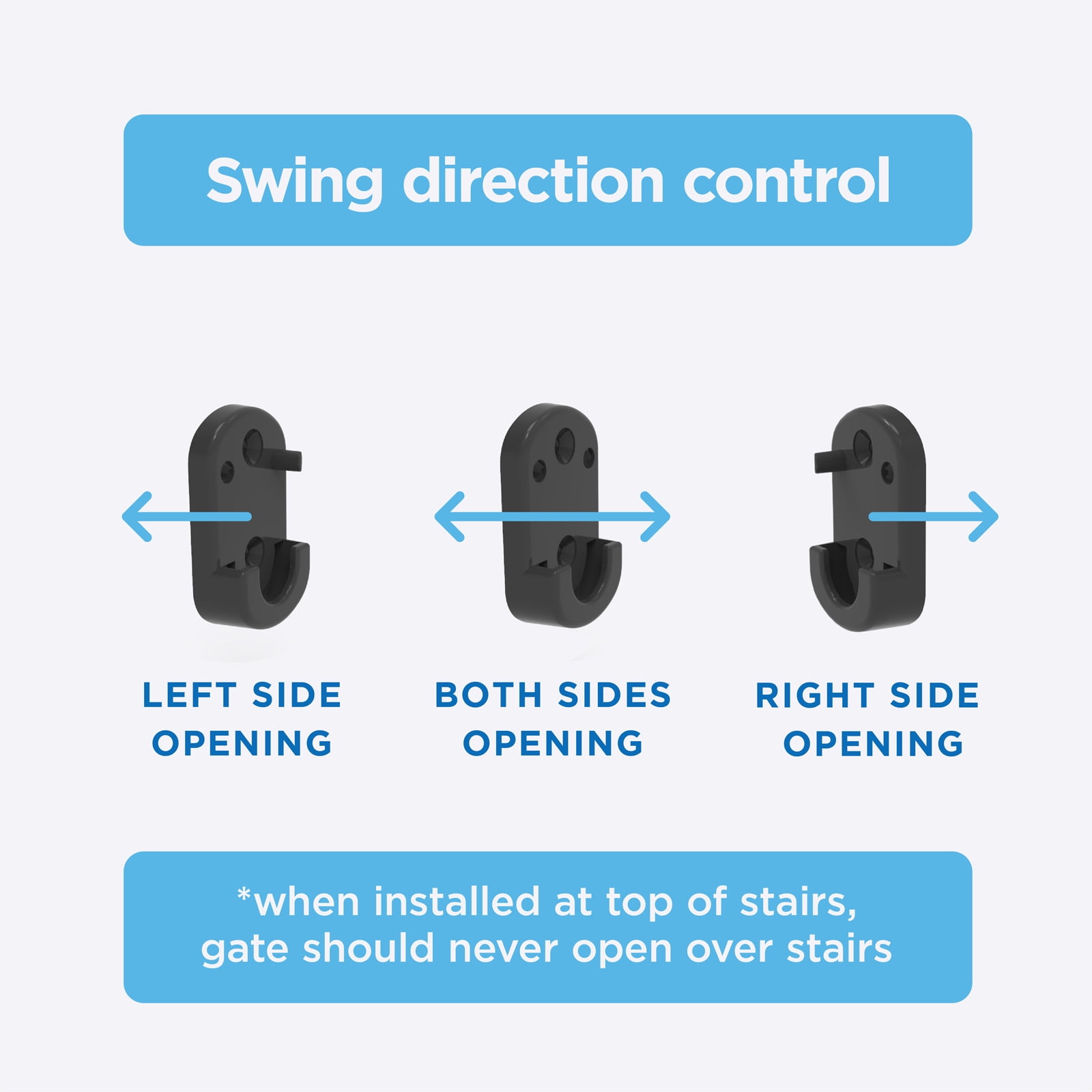 PRODUCT DETAILS: This Extra Tall & Wide Superior Swing Gate fits extra wide openings 32.3″-55.9″ and measures 36″ tall; one-handed operation with red/green locking indicator, swing direction control and snap connectors for quick assembly. NO TRIP HAZARDS: Mount securely to the wall, this barrier hangs from its mounts instead of resting on the floor like other baby gates. ONE-HANDED OPERATION: Perfect for busy parents, the one-handed operation allows you to easily open the gate and securely close while holding your child, safe and secure locking indicator shows green when gate is securely locked. 2-WAY DIRECTIONAL CONTROL: Ideal for limiting access around doorways and stairs, set gate to only open from one side or allow access from both sides. CHILDREN & PETS: Built for functionality, this Extra Tall & Wide Superior Swing Gate is ideal as an infant gate and a pet gate to keep mischief contained by providing a safe, closed off environment to play. Suitable for infants 6-24 months of age and pets 10-40 pounds. STURDY METAL FRAME: Robotically welded steel for superior strength, nylon components for durability and powder coated for the perfect finish. Ideal for high traffic hallway locations.