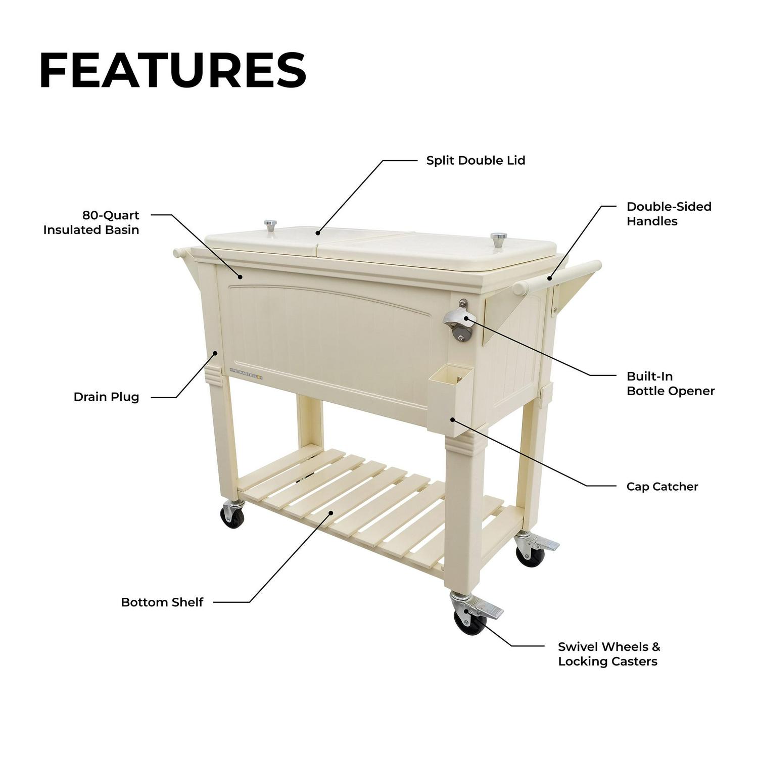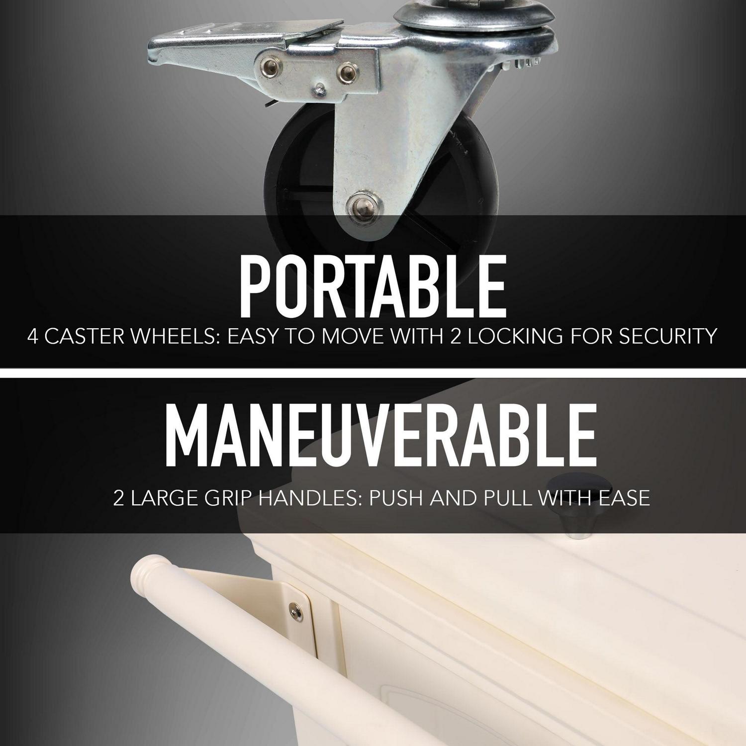– Wheeled cooler for easy portability moves your outdoor cooler around with the 4 casters (2 locking casters)