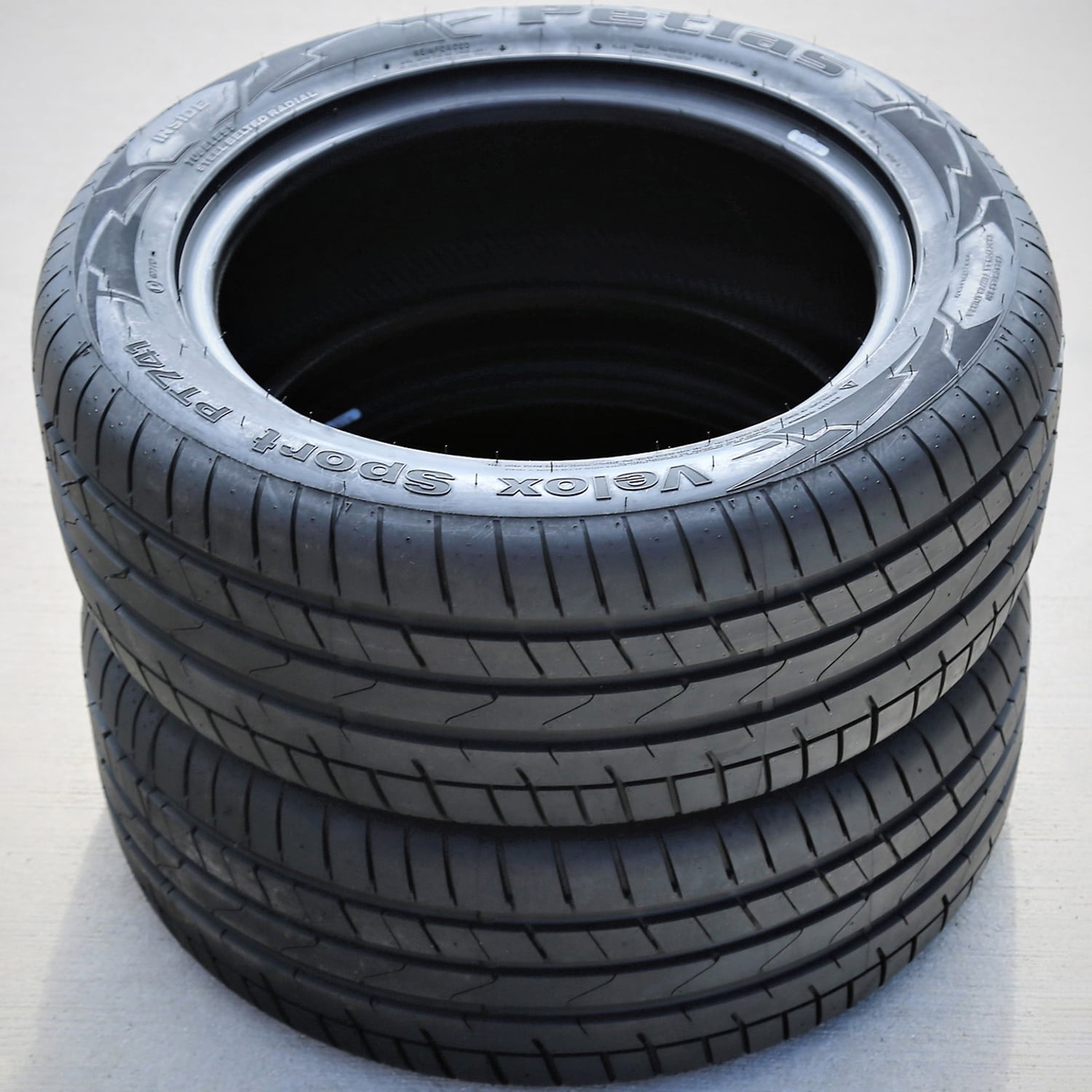 Petlas Velox Sport PT741 OVERVIEW The Petlas Velox Sport PT741 is a performance and high performance, summer tire manufactured for passenger vehicles and SUVs. Summer weather traction is ensured with this model. The tire combines summer compound and asymmetric tread design in order to offer exceptional dry and wet weather performance. The model’s special heat-resistant compound enables its exceptional dry-weather traction. Ribbed elements increase the tire’s traction in dry and wet conditions. Hydroplaning is avoided since circumferential grooves disperse water from below the footprint. Exceptional high speed durability and overall controllability are promoted. The asymmetric tread design’s surface contact improves its steering responsiveness and driving stability. It helps to increase its steering response time and accuracy, while the structure is secured against driving pressure. The stronger compound decreases the tire’s braking ability, significantly shortening its stopping distance. Cornering is upgraded thanks to the additional biting edges gripping the road. The model’s high speed durability is promoted by the heat-resistant compound and durable structure. The Velox Sport PT741 also offers high driving comfort levels. The variable pitch phase shift of the tread design helps to decrease road noise generated while the tires are in motion. This footprint negates sound waves by generating a sound-canceling frequency. In this manner, the tire offers a quiet driving experience. Manufacturers recommend changing tires every 10 years. As long as tires are properly stored before they are sold, the year of their manufacture will not shorten their service life.