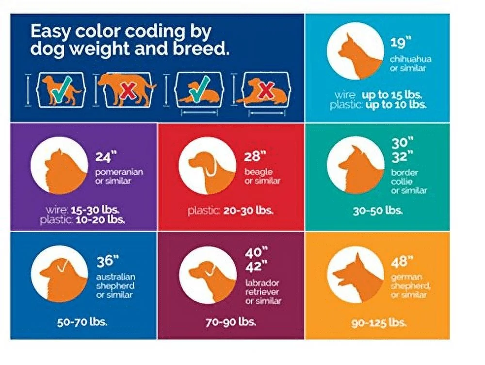 Wire vents, raised interior, and tie-down holes provide a safe and comfortable travel experience. The kennel is available in different sizes, ranging from 25-90 pounds, to accommodate a wide range of pets. Durable plastic and metal screws help keep the kennel stronger for longer. Ideal for training and travel. Great for breeds such as Australian Shepherd, Basset Hound, Bull Terrier or similar breed. Easy open latch. Easy to assemble. Screws and fasteners offer a simple, no-tool construction for stress-free assembly Since introducing the first dog kennel over 50 years ago, petmate has gone to great lengths to continue improving the lives of pet owners everywhere with a line of quality products.