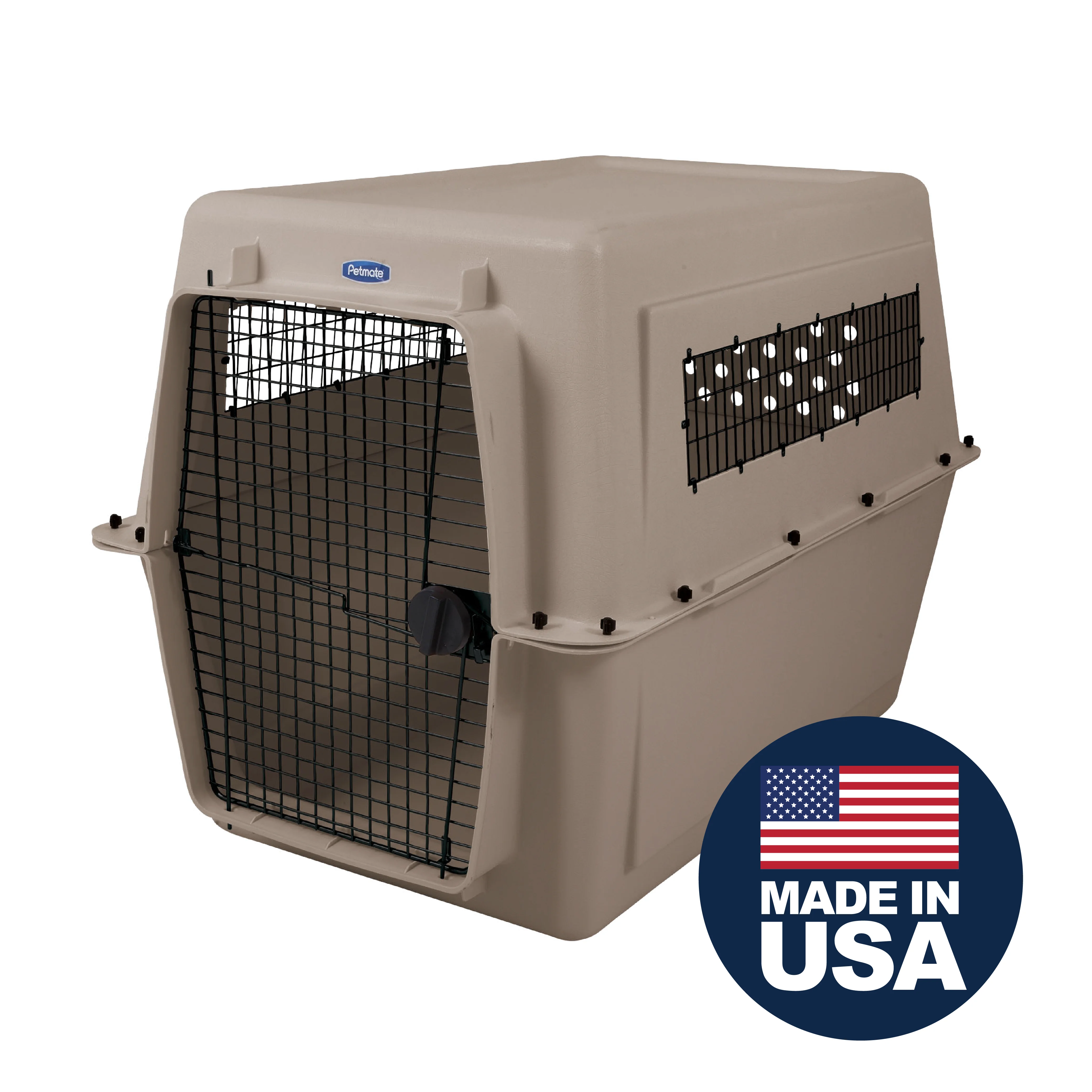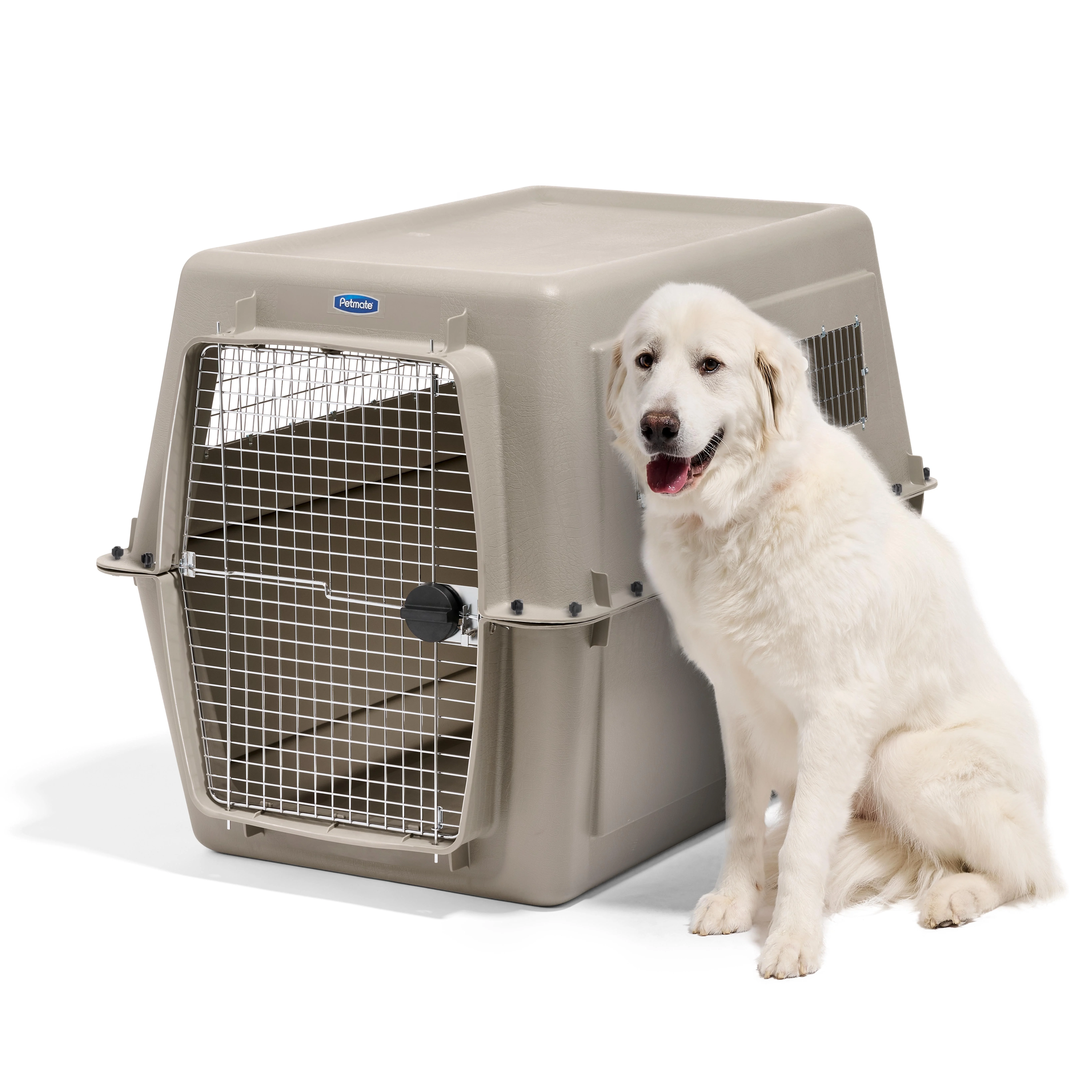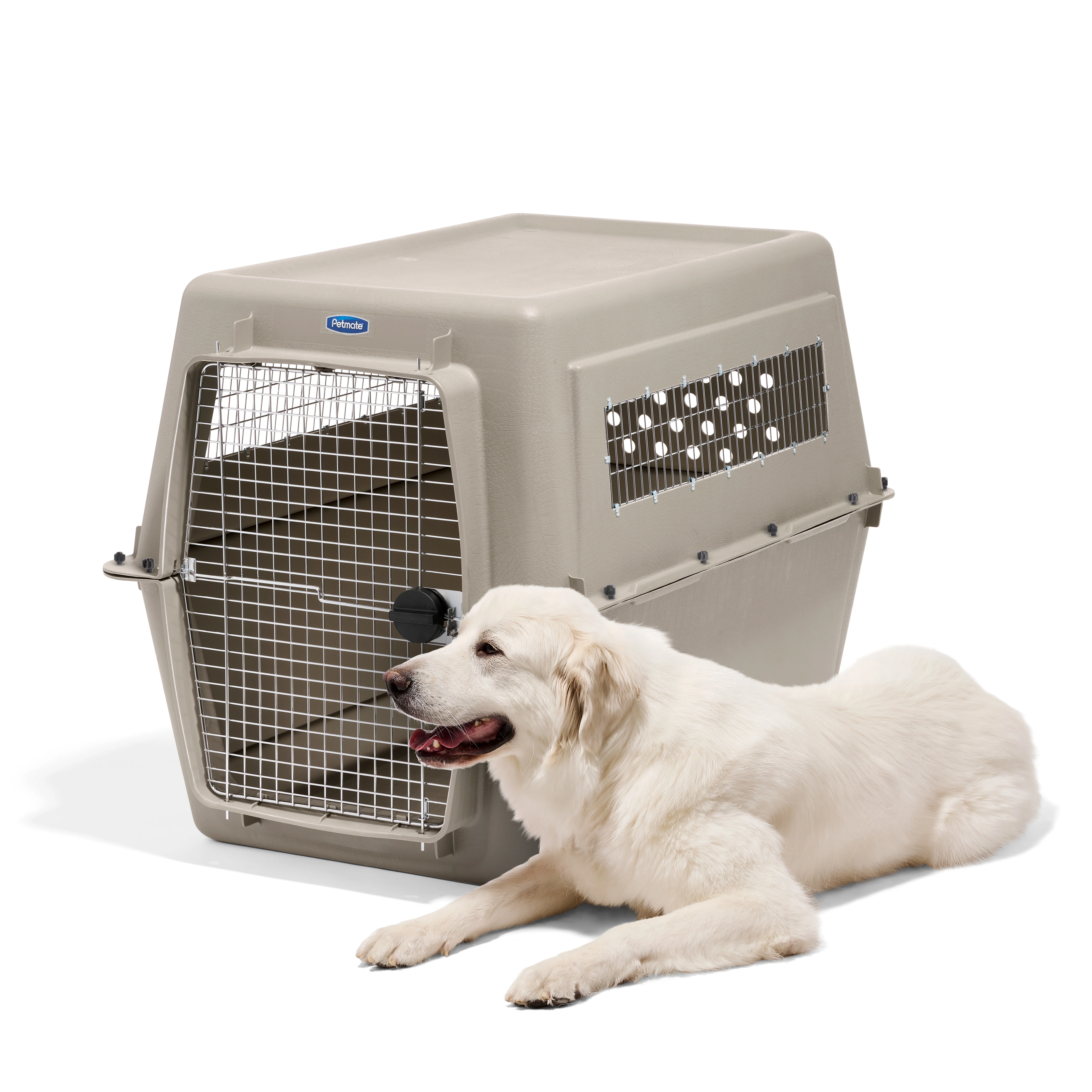 Petmate Vari Extra Large Plastic Portable Dog Kennel Airline Friendly Pet Carrier, 48″ for Pets 90-125 lb, Bleached Linen
