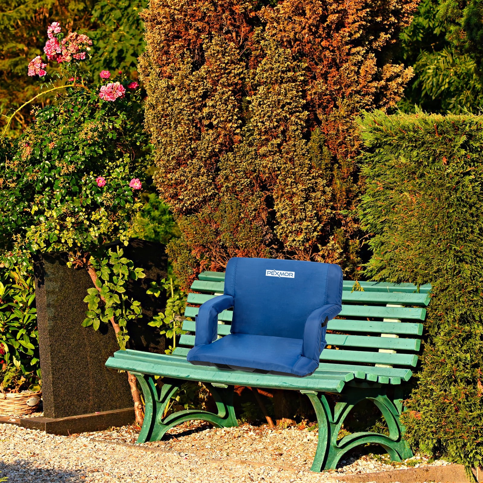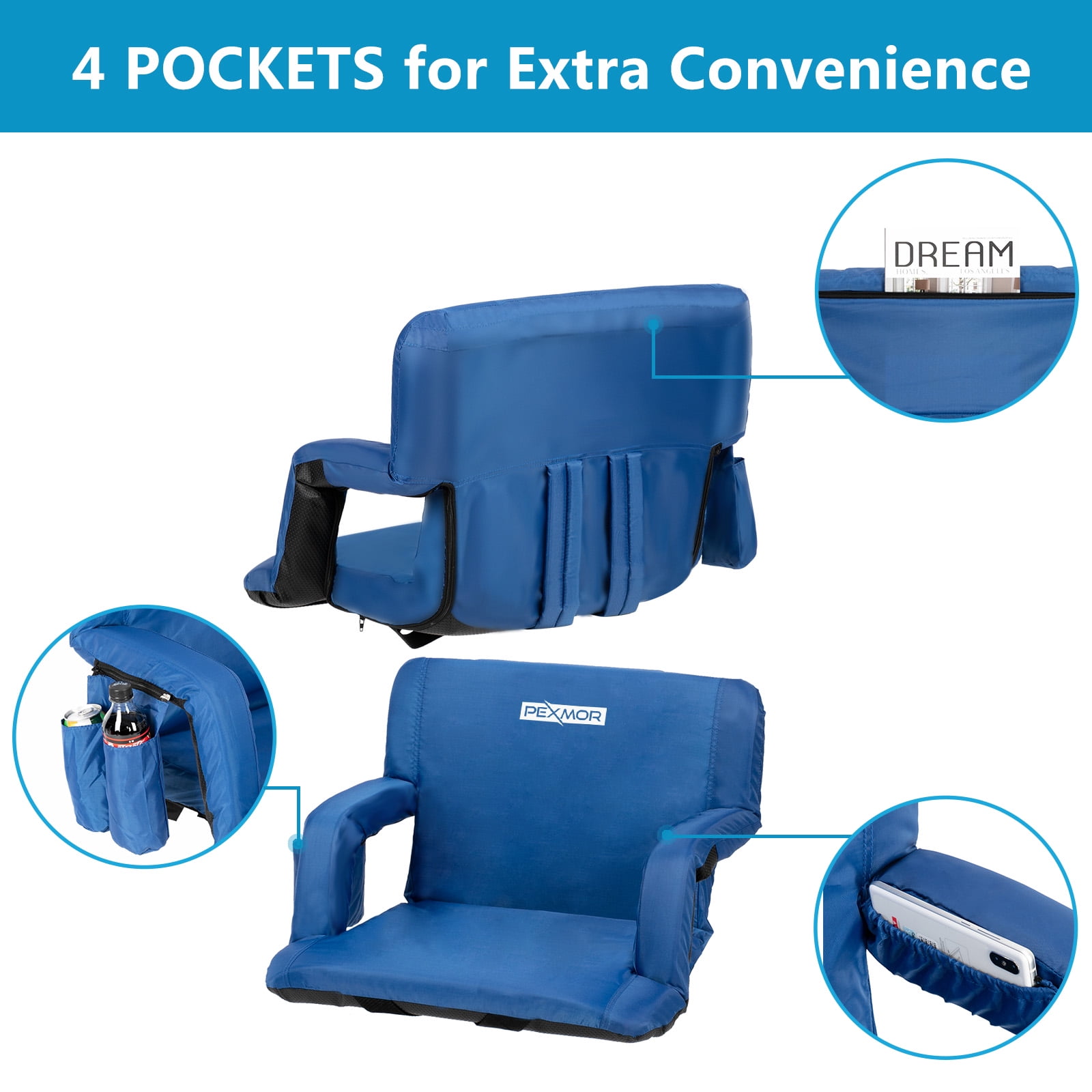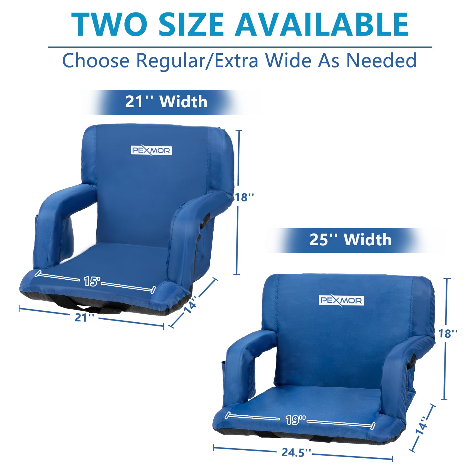 PEXMOR Extra Wide 25” Stadium Seat for Bleachers with Back Support & Carrying Bag, Portable Reclining Cushion