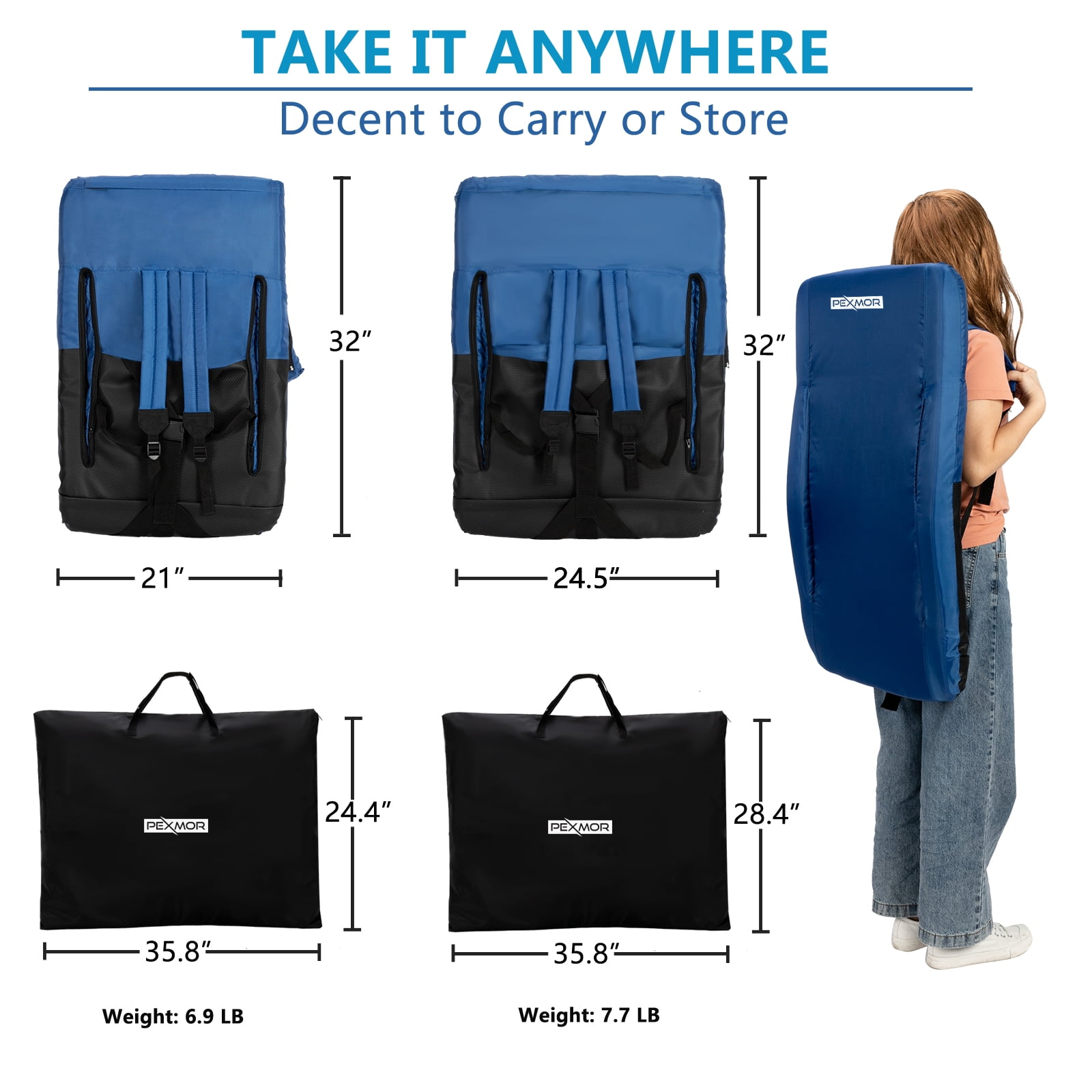 Ours seat is REAL Extra Wide, whose width is 25 inch. Compared with others’ standard 21 inch, ours are more spacious and comfortable. This Stadium Seat weighs less than 8 pounds and can support up to 330 pounds. What makes this chair special is the ability to transform from a bleacher seat into a regular chair that can be used on the ground. Not only suitable for bleachers, but also ensure you have the best seat in the house no matter where the party takes you. There’s seat strap which could be fixed under the bottom of the bleacher to hold you in place. (Bottom is designed to be anti-slip and waterproof. The seating will be dry and safe.) The chair sets up in a matter of seconds and also has a pocket on the right side to hold your key/phone/drinks/snacks. The bleacher alone was hard and had no back support. Howevere, once you’re shifted into the Stadium Seat you’ll have a softer surface to sit on and some nice back support. Attention: The seat needs to be unfolding when being transported in carrying bag. Please carefully see the dimension of portable bag which is almost as large as seat in unfolding status.