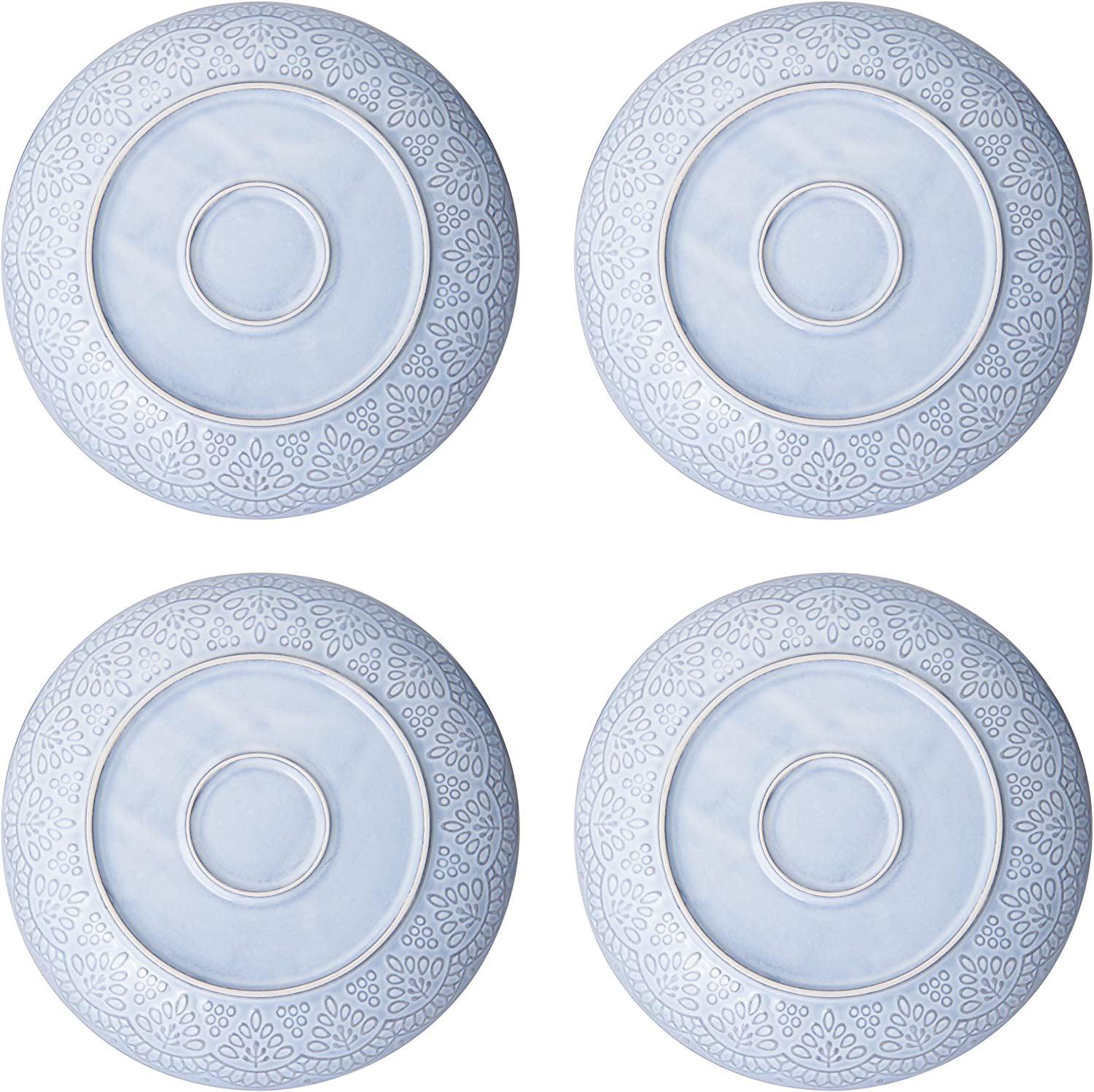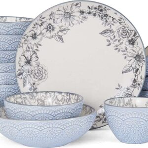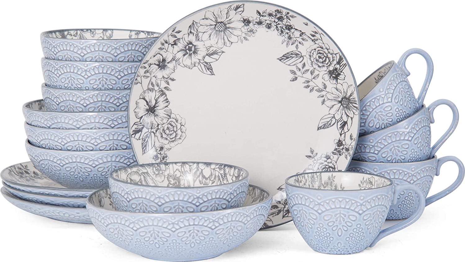 DINNERWARE SET FOR 4: This 16-piece dinnerware set, service for four, includes 4 each of: inch dinner plate, inch Salad plate, 6-inch bowl, and 12-ounce mug,BEAUTIFUL DETAILS AND DESIGN: Featuring a beautiful reactive glaze due to the nature and hand-crafted qualities of reactive glaze, no two pieces are exactly alike and will exhibit unique variations in color and pattern,DURABLE AND HIGH QUALITY: Made from high quality stoneware for long lasting beauty and durability,VERSATILE DINNERWARE DESIGN: The beautifully detailed design complements any decor and can be used for formal and casual occasions.,DISHWASHER AND MICROWAVE SAFE: All pieces of this dinnerware set are both dishwasher and microwave safe.