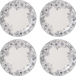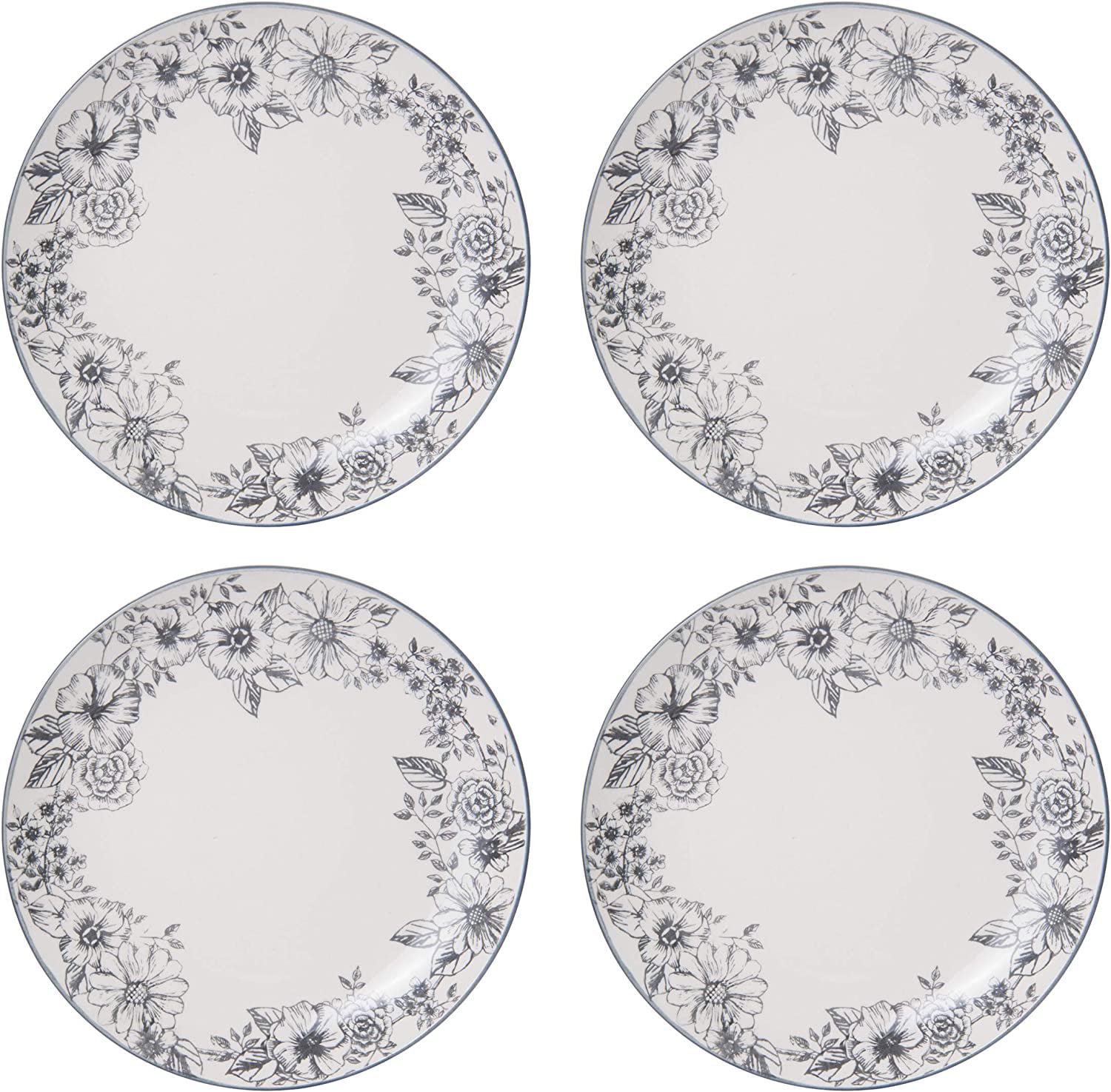 This Pfaltzgraff Gabriela Grey 16-Piece dinnerware set features a sketched gray floral design with a gray reactive glaze on the outside of each piece. Due to the nature and hand-crafted qualities of the reactive glaze, no two pieces are exactly alike and will exhibit unique variations in color and pattern. The set is crafted from high quality stoneware for lasting beauty. This 16-Piece set features service for four and includes 4 of each: a inch dinner plate, an 8-inch salad plate, a 6-inch bowl, and a 12-ounce mug. The beautifully detailed design compliments any decor and is perfect for everyday use. Dishwasher and microwave safe.