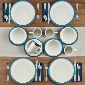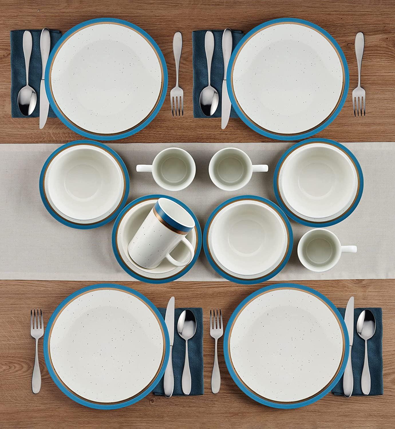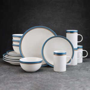 – 16-PIECE SET: includes 4 each of 10-1/2 inch dinner plate, 8-1/4 inch salad plate, 21-fluid ounce cereal bowl measuring 5-1/2 inches tall with a 5-1/2 inch diameter, and 12-fluid ounce mug measuring 4-1/2 inches tall with a 3-inch diameter