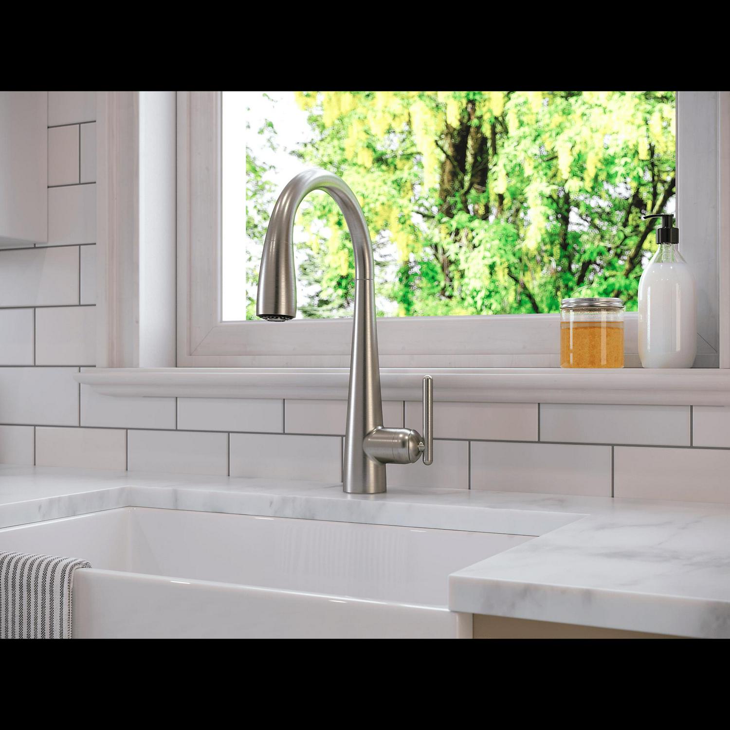 Pfister GT529SMS Lita 1-Handle Pull-Down Kitchen Faucet with Soap Dispenser in Stainless Steel