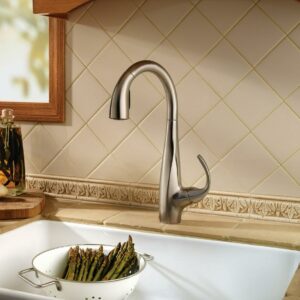 Avanti is designed on a smaller scale for homeowners who desire the style and functionality of a pull-down but have more modestly sized sinks and kitchens. The unique curvature starts at the base of the faucet and twists its way up toward the spout. The curvature gives a bit of contemporary flair to kitchens with more modern decor yet remains simple enough to coordinate well with most kitchen styles. The Avanti brings functionality and a sense of personal style to the room.